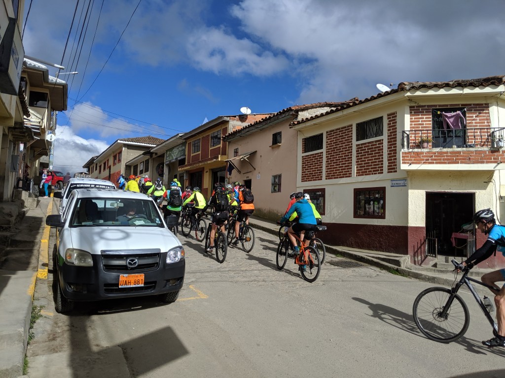 The descent was pretty amazing. It felt faster than it was but suddenly we had done another 20 km and were down in Biblián, the town for lunch. I even passed a motorcycle. Once we pulled over at the square where lunch was set up it was SO much warmer and nicer. The sun came out and I just stretched out and could’ve stayed a long time. But after a few power burritos, and a sweet granadilla to top it off, it was time to go.