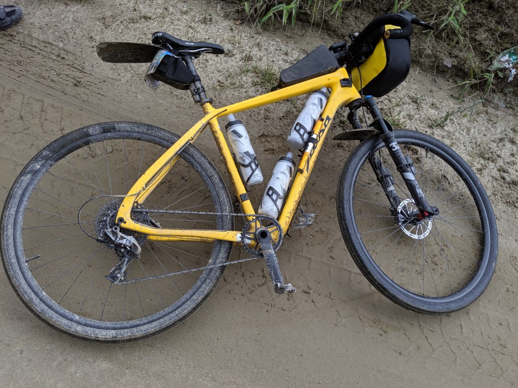 It started raining soon after I started up again and the descent was challenging – the rain drops felt like needles on the exposed parts of my face. I couldn’t feel anything on my legs. Around km 58, it all got better. We turned off the Pan-American Highway onto an unmarked dirt road which is a genius move from Rob: this road cuts off about 12 km and saves something like 500m of climbing to Loja! Also it’s got little traffic and is SUPER scenic, and IT’S DIRT for 30 km! It was still raining and somewhat muddy but that did not detract. The mud was actually packed by vehicle tires in a great way – it was very secure and you could go fast.