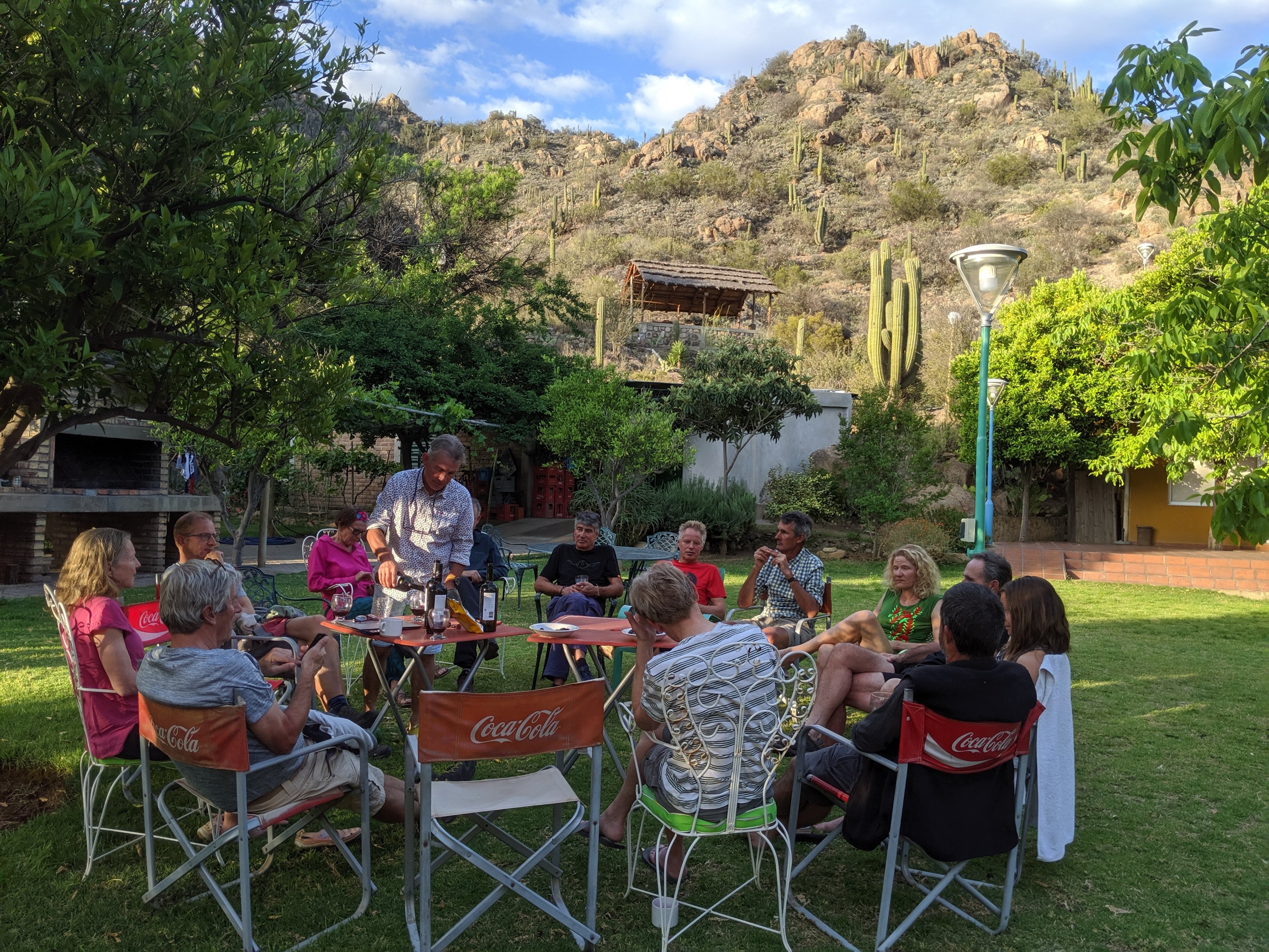 We packed up and took off just after 8am. We elected not to go with the A team and instead cruised to lunch at 75 km in the town of Londres in a group of six. Andrew led a lot of the way and the riding was interesting through canyons, mostly down down down with a little up. We lost 1,350m during the long ride and only climbed 550. Lunch at the town square was nice except for a super loud speaker extolling the virtues of a great future in Londres etc. But it was great to get off the bike and refuel. After lunch I wasn’t sure but decided to go with Wytze and crew. He said it would be nice but by now I know what really happens. It was ok for 30-40 km then he was up to 38 kph into the wind and I faded. But it’s hard to escape. He noticed and forced us to regroup. I followed his wheel for the rest of the way to San Blas and had to refer to rule 5 in order to make it, many times. Wytze said, “You can’t escape.”