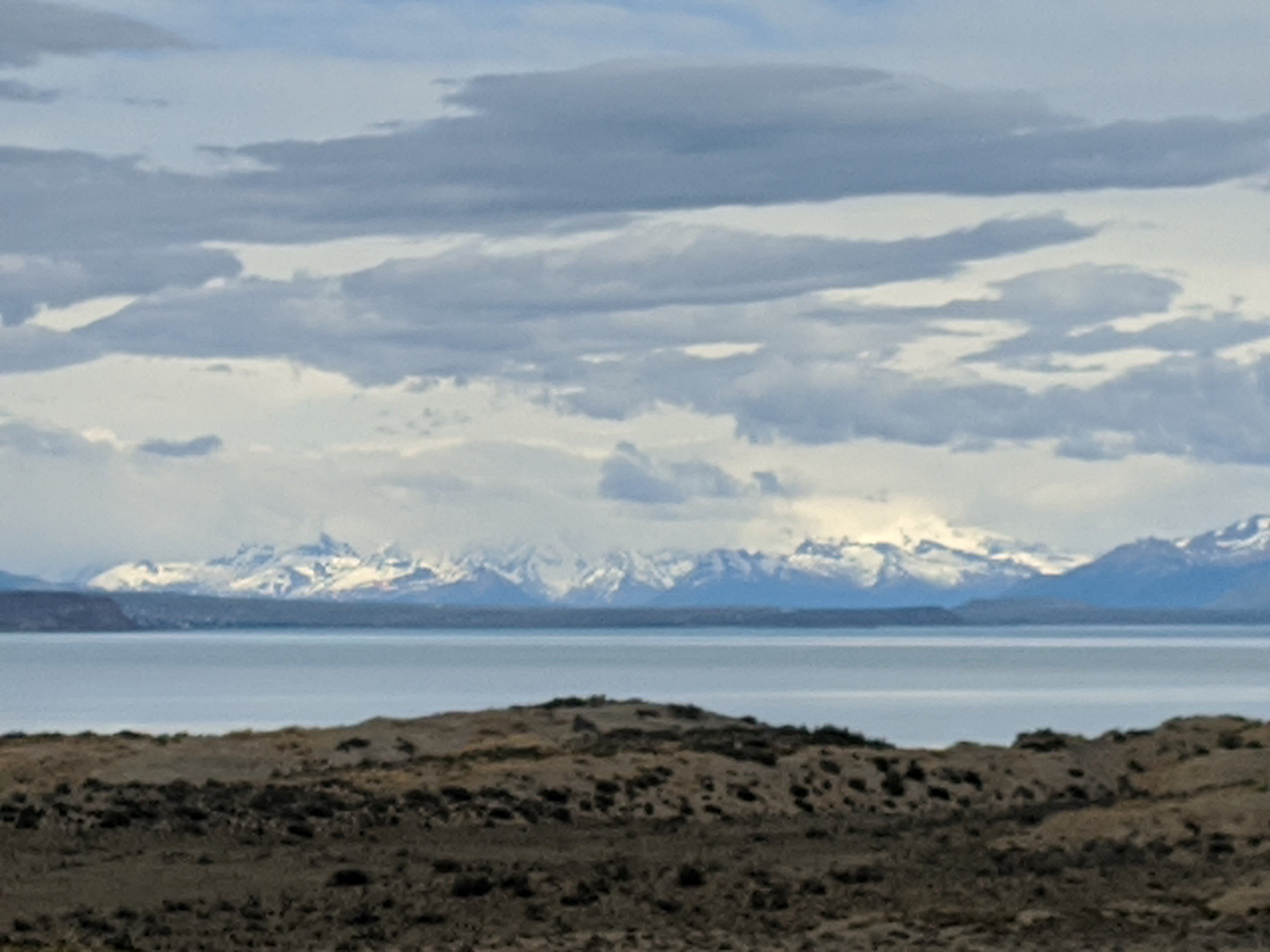 We had a scare around 35 km when we had a climb and a headwind came out of nowhere but we turned again and it dropped. After two hours we had done the 56 km to lunch and it was a repeat of the previous day: Ype and James were set up at a gorgeous spot, overlooking a lake (this time Lago Argentino with El Calafate on the other side), and there were gorgeous snow covered mountains in the distance. Again, all the chairs were set up pointing away from the truck, and were not blowing over because there was basically no wind – unheard of!
