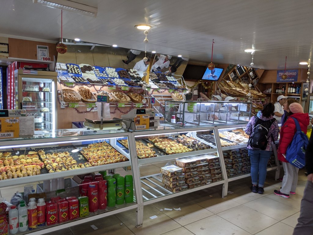 Lunch was “about halfway” as Rob always says, then we continued on again. We rode through Tolhuin to the Panadería La Unión, supposedly the most famous bakery in all of Argentina. I don’t know about that, but all seven of us loved sitting down, out of the wind, and eating pastries in the crowded, fun place. A couple of churros and some other pastry set me back 75 pesos, just over $1.