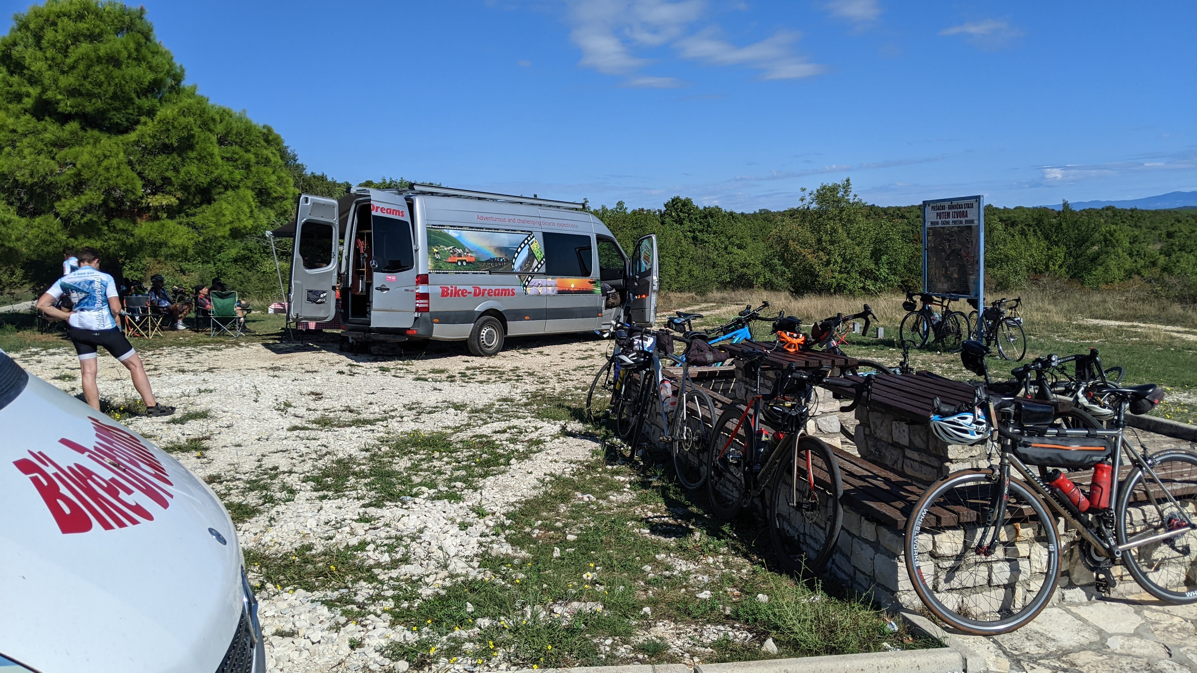 Refreshed, we continued up and down for another 14 km to a scenic ridge where Ype had set up the lunch van in a perfect spot. It was barely after 10:30 but somehow I had no trouble eating a full lunch. Ype had nice music going and all of us were enjoying life.