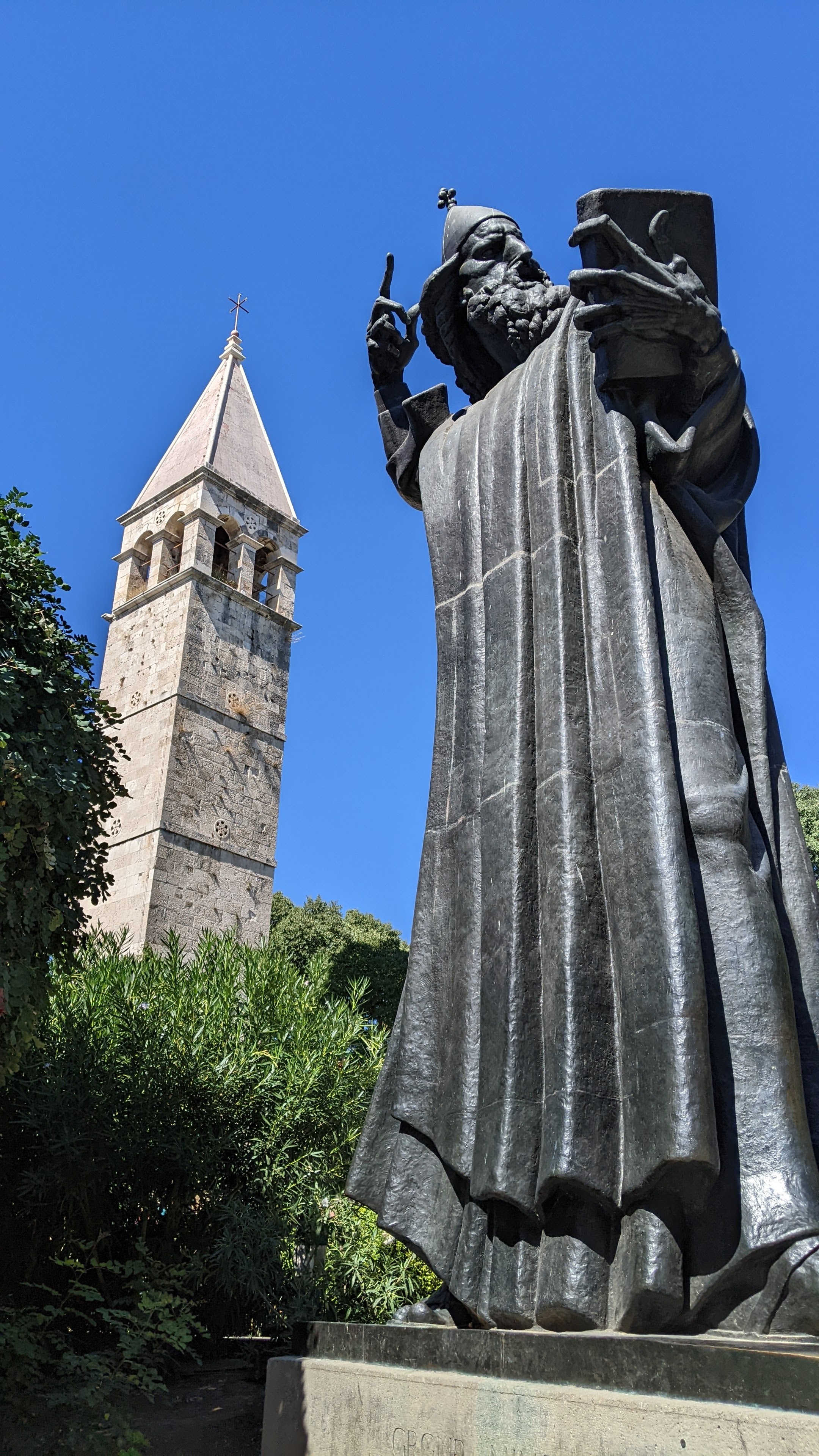 We walked past Gregory of Nin’s statue and through the Golden Gate back into the Palace. We ran into Donna and Elizabeth and decided to eat lunch together. I had a nice pizza and it was nice chatting. Donna is heading home to Canberra, Australia tomorrow. Bike Dreams trips are flexible – you can do the whole thing or just part. After lunch, Bob headed off to meet some relatives who happened to be in town and I looked around the Palace some more.