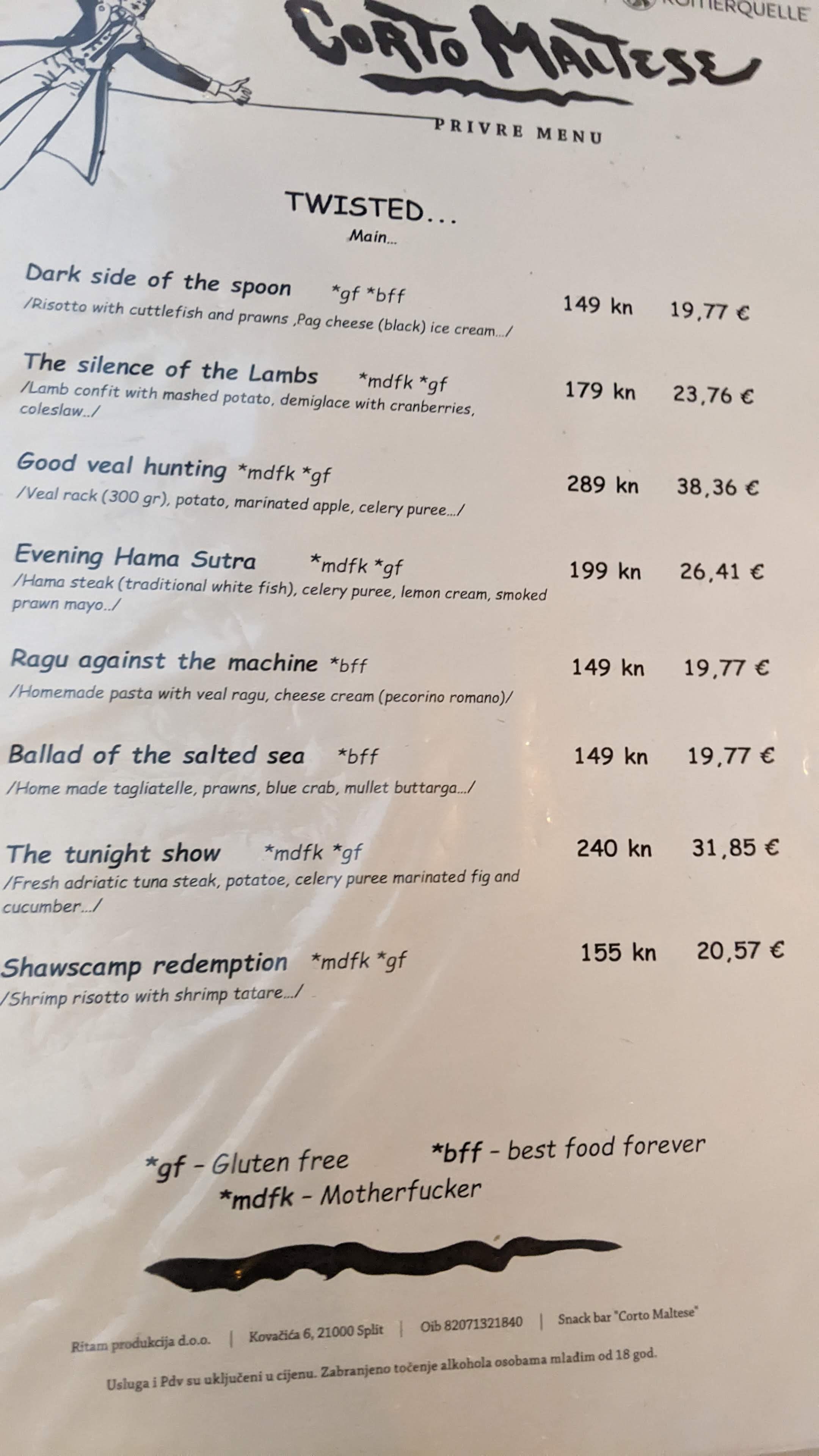 I went back in and it was almost dinner time. Niek and I walked back to the Corto Maltese Freestyle Restaurant where we had a reservation this time.