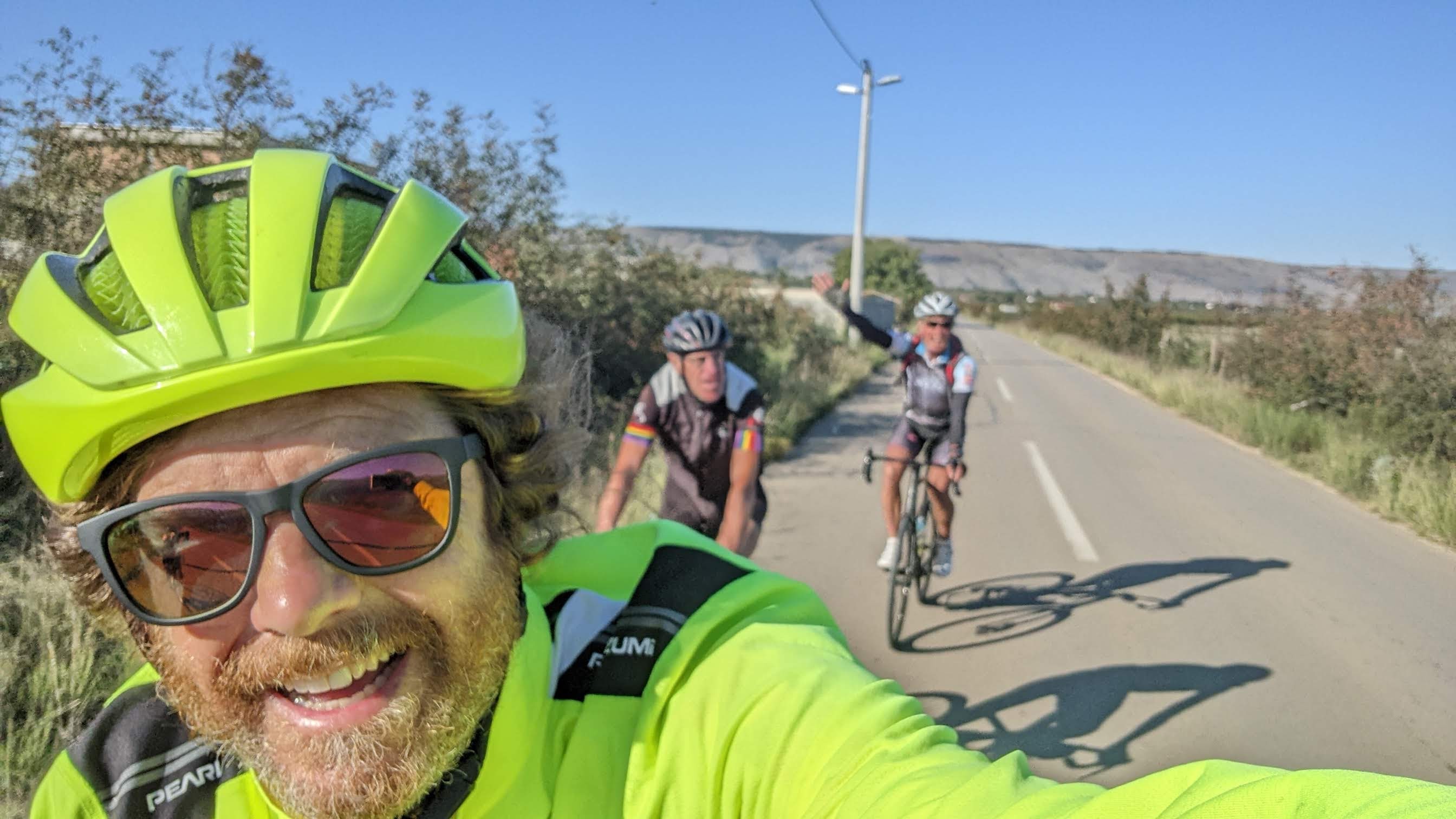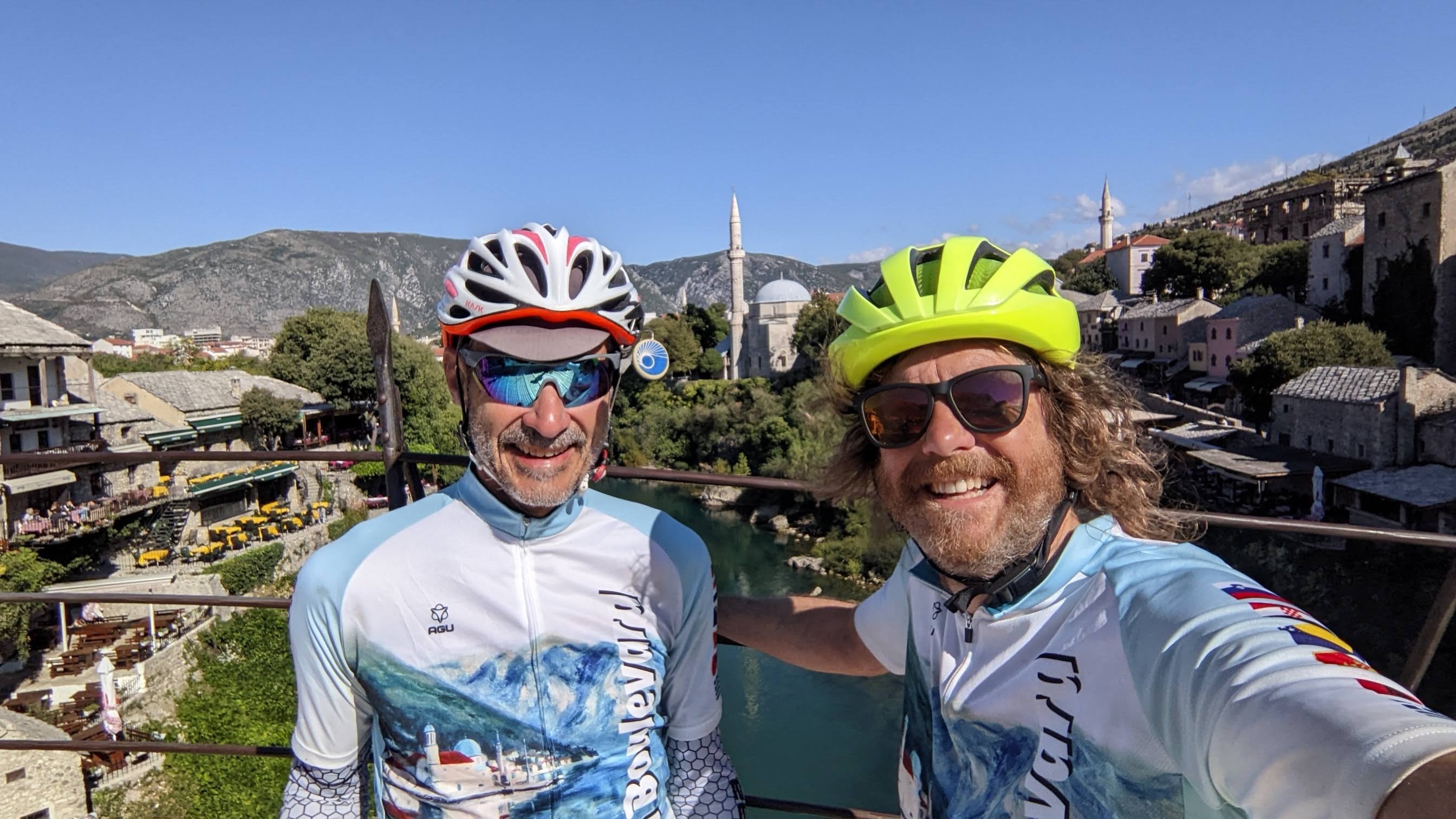 We rolled away soon, now dressed in short sleeves and fingerless gloves. Good thing too since Rob’s route soon had us taking a detour up a pretty steep climb on a tiny “road” that measured 19.2% at the steepest. That will warm you up. Then a nice descent and we were getting close to Mostar.