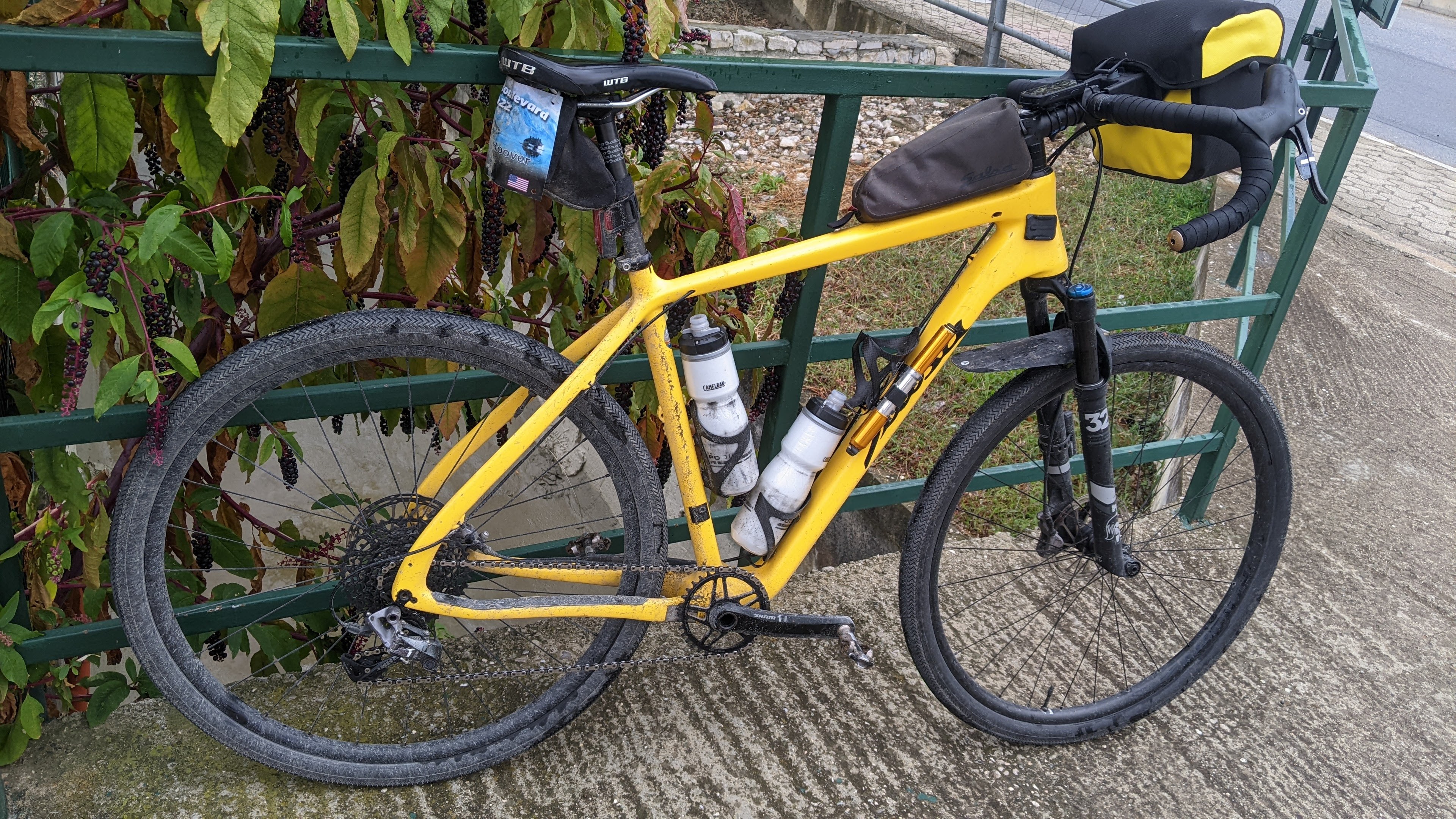 It rained a bit a couple of times but I didn’t bother stopping and changing clothes – once you’re wet you just keep going. Lunch was supposed to be just after a bridge at 60 km and the bridge came just after a long construction zone, muddy, bumpy and slow. The bridge itself was pretty crazy, broken, barely passable by motorcycles, not by cars, but fine for gravel bikes. I waited for the others when I got back to the pavement but no one came. And there was no sign of the lunch truck so I continued on.