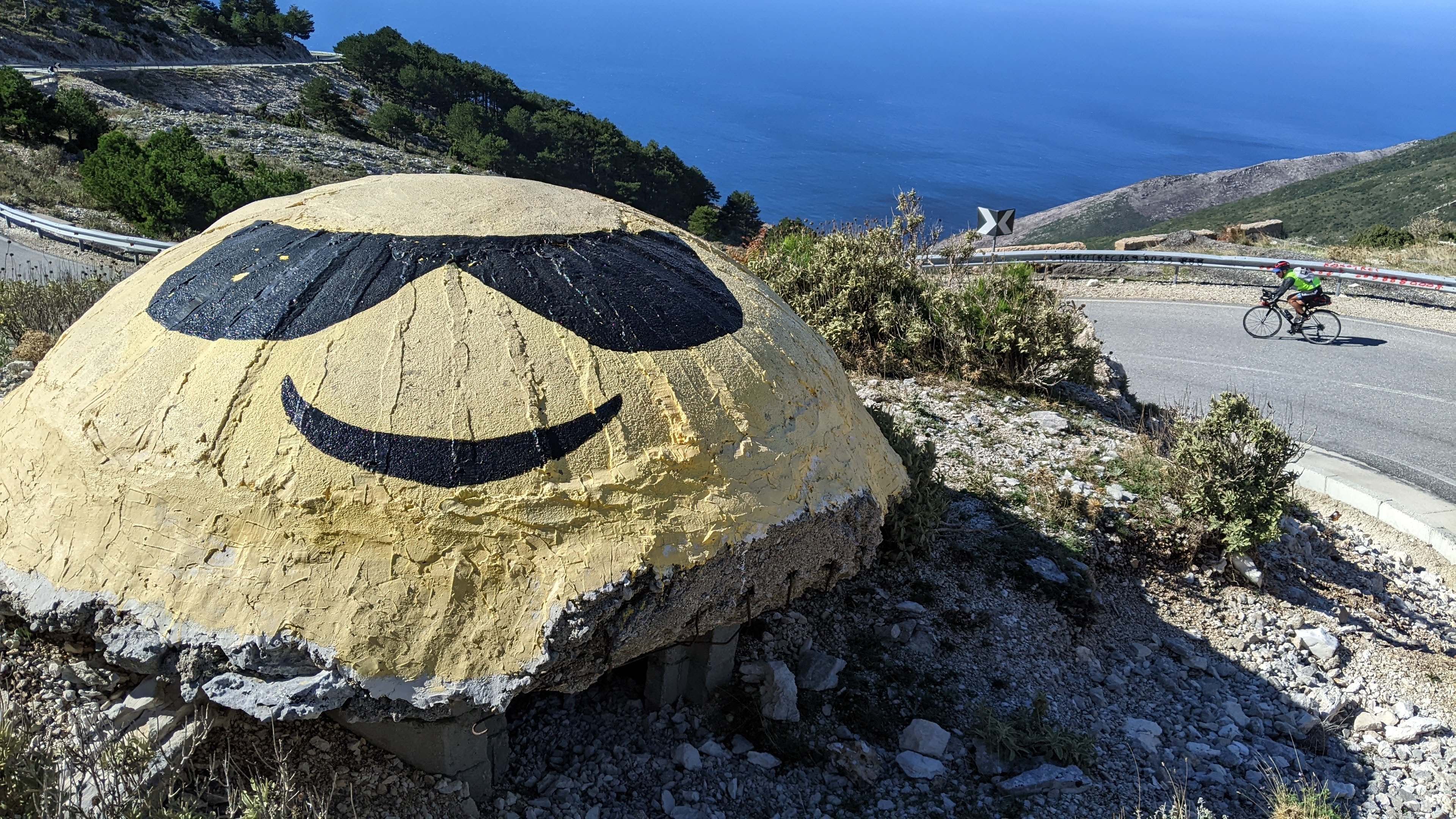Soon I put on a jacket and headed down. I stopped pretty soon because I saw a bunker right next to the road and was dying to actually go inside one and check it out. It was smaller than I expected, kind of lame really. I still can’t believe they built over 170,000 of these in 8 years in the 70s. But the modern paint jobs are good.