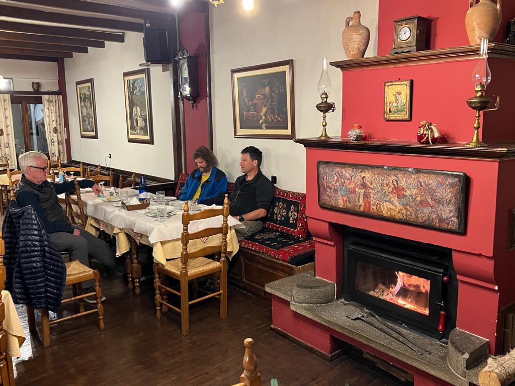 The owner brought us free ice creams for dessert and didn’t offer any ouzo, just excellent! We walked home, all wearing heavy jackets, wondering how cold it will be in the morning. We took a detour to the hotel lobby to stand by their roaring fire for a while before going upstairs. I will certainly sleep well tonight!