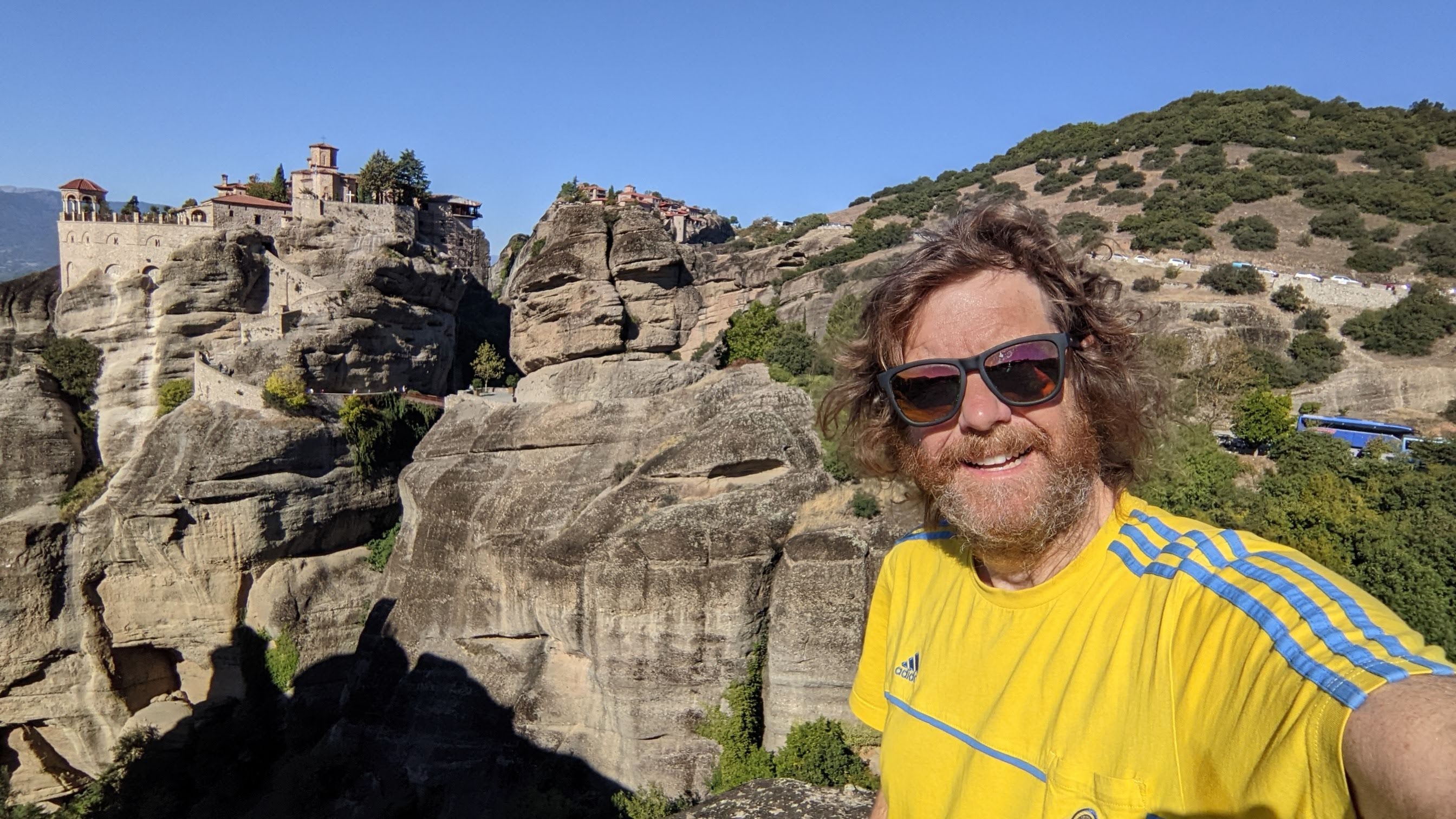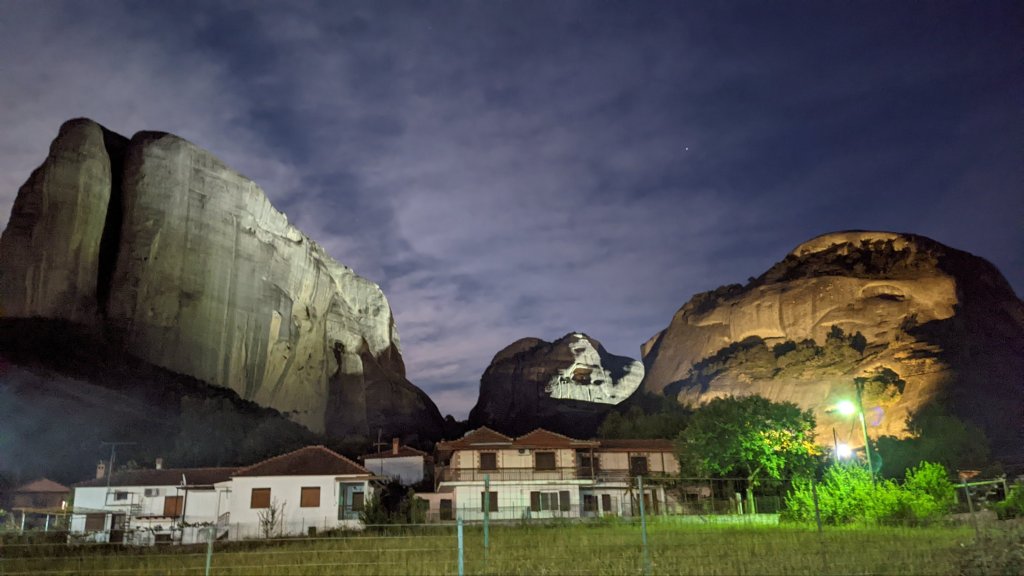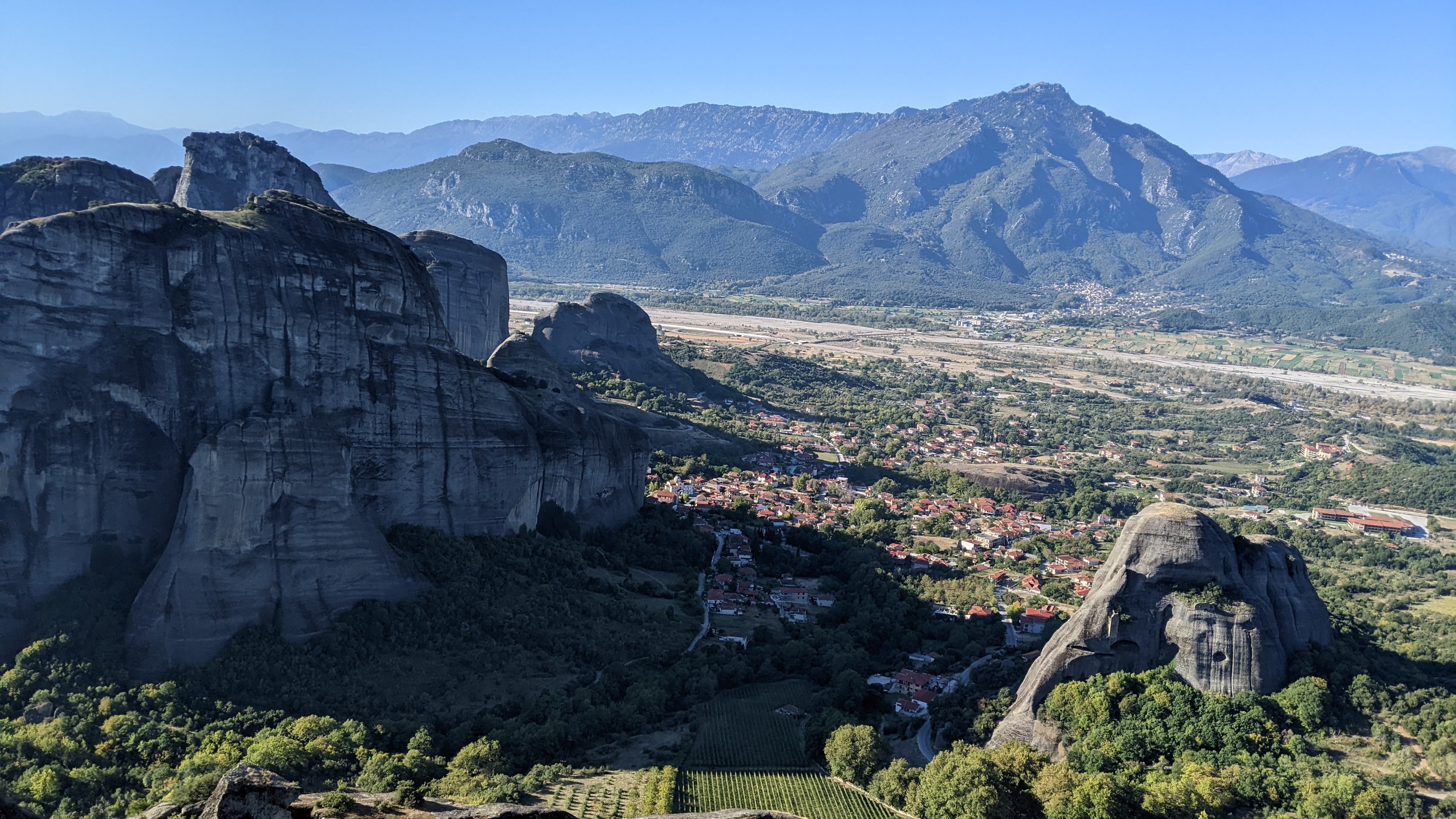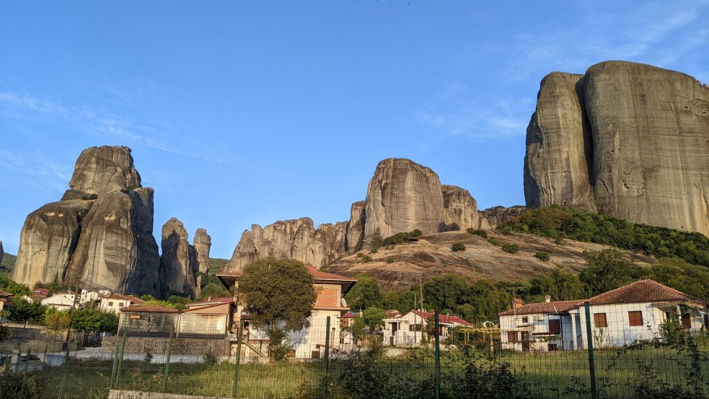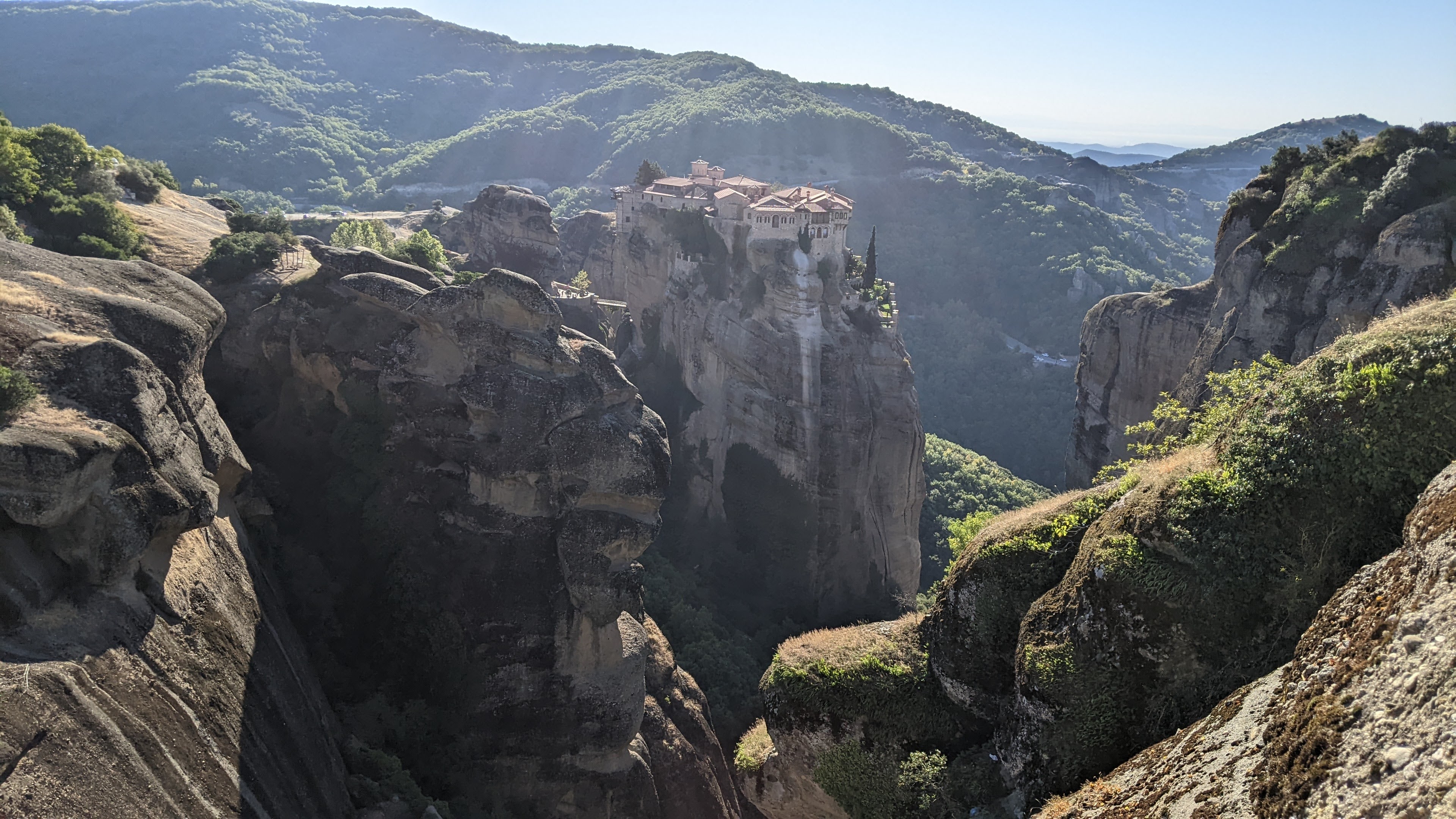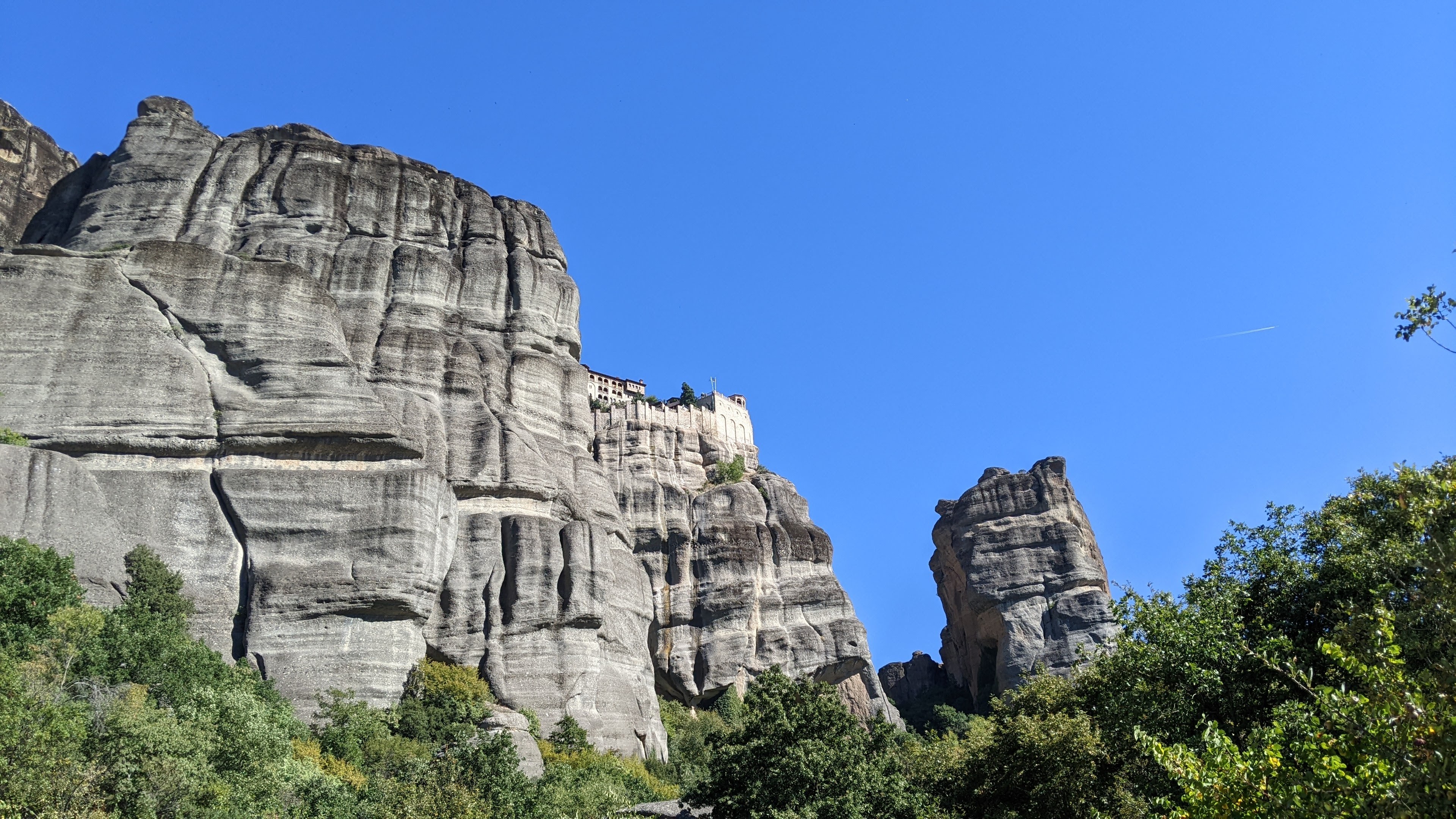 It’s a large, super scenic complex. I spent over an hour there exploring the museums, looking at the view and seeing every room that was open. Best was the church – a relatively small chapel, but very ornate and peaceful. I was sitting just absorbing, when a small group came in led by a guy with a big black beard who may have been a monk. He spoke with a deep resonant voice, talking about something for a long time. Then they all broke into song, very nice acoustics in the room. Many people were disregarding the “No photos, no videos” signs that were all over, but I didn’t. After that little concert, I headed out. I walked down to the next-door Monastery of Varlaam. It looked pretty cool too, but I just climbed a rock near it for a view and didn’t go in.