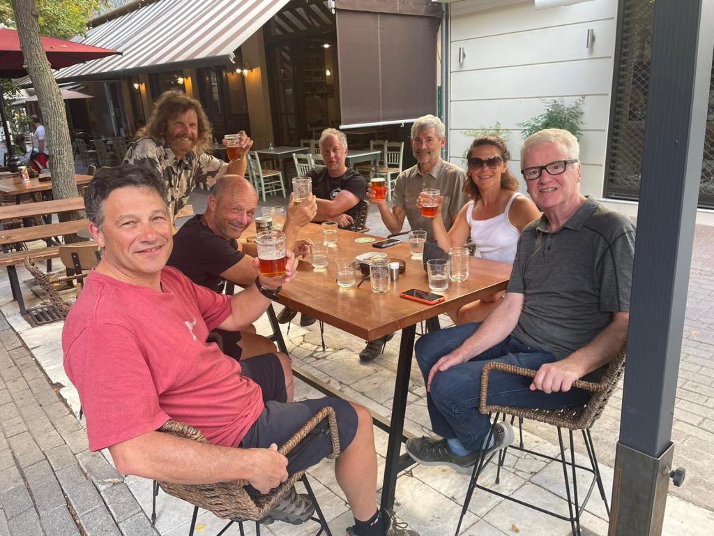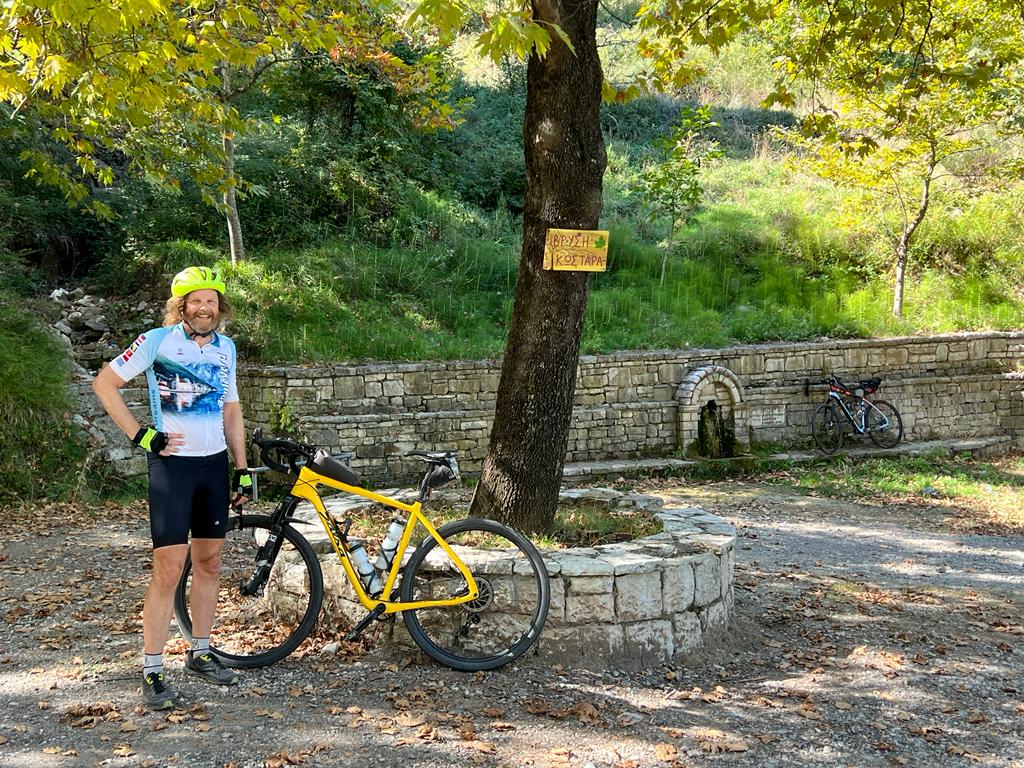After showers and a little photo work, we headed out to where our craft beer team had found…Lagunitas IPA from California on draft, served in the authentic large mouth Lagunitas glasses. About eight of us had a fun round or two of beers there, then we moved across the street to a restaurant for dinner. We did what you can only do on a trip like this: ordered double meals each, plus more beer! I had a giant Greek salad plus a nice orzo and shrimp dish. Then, because tomorrow is a bigger day than today (2400m climb in 106 km), we went back and got ready for a massive sleep.
