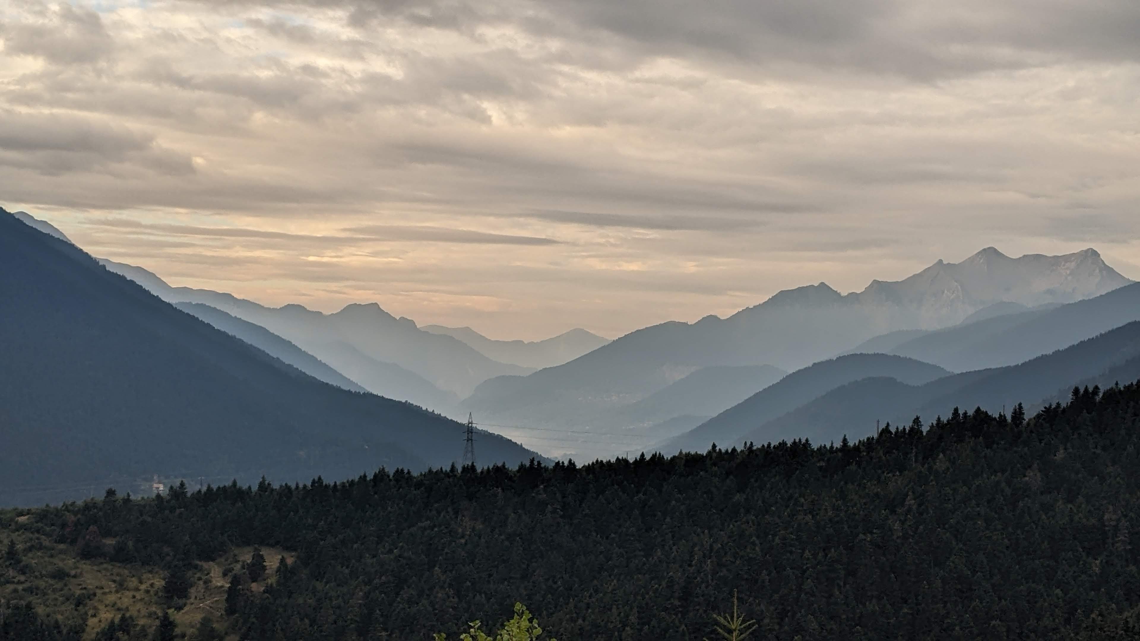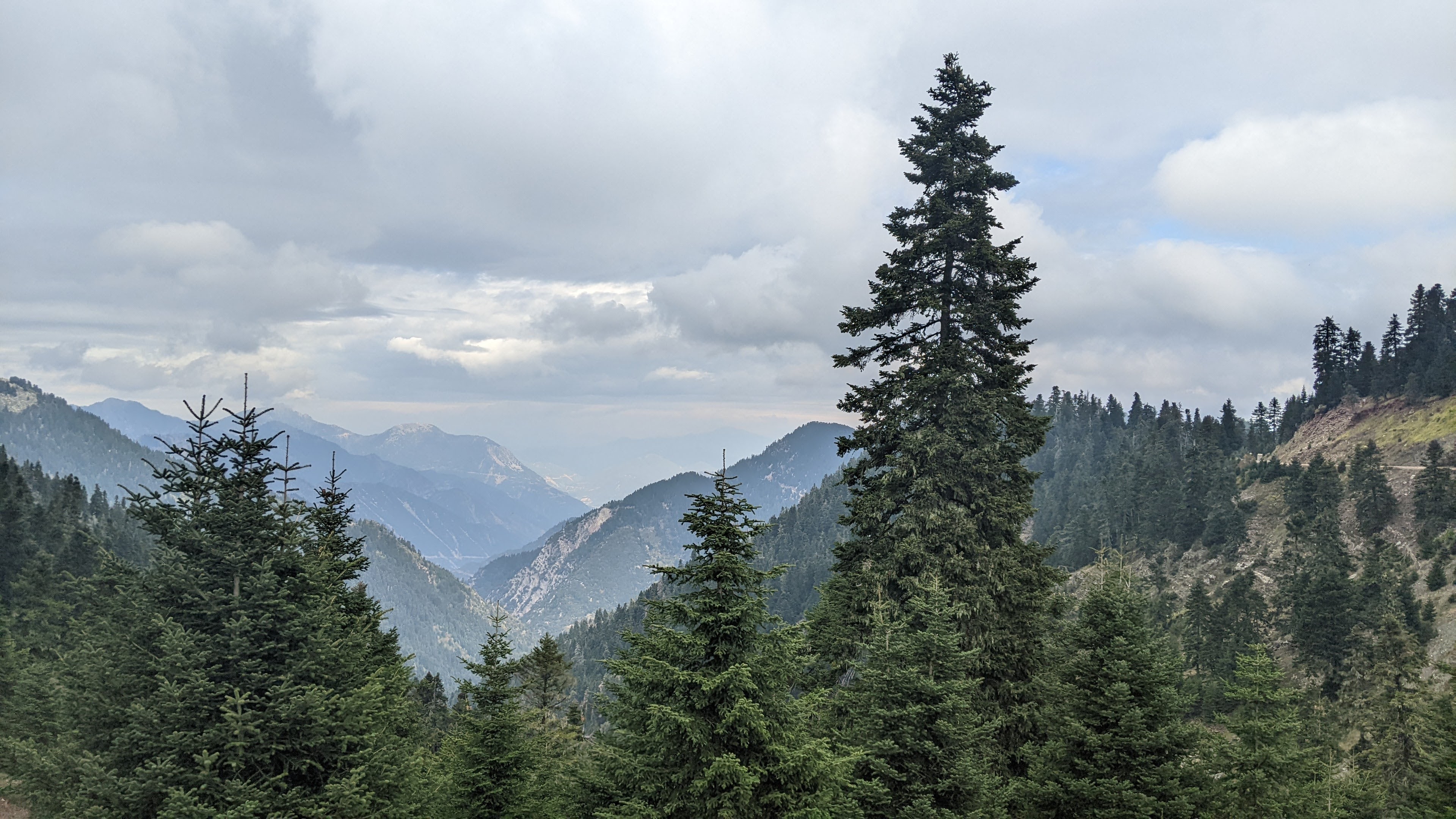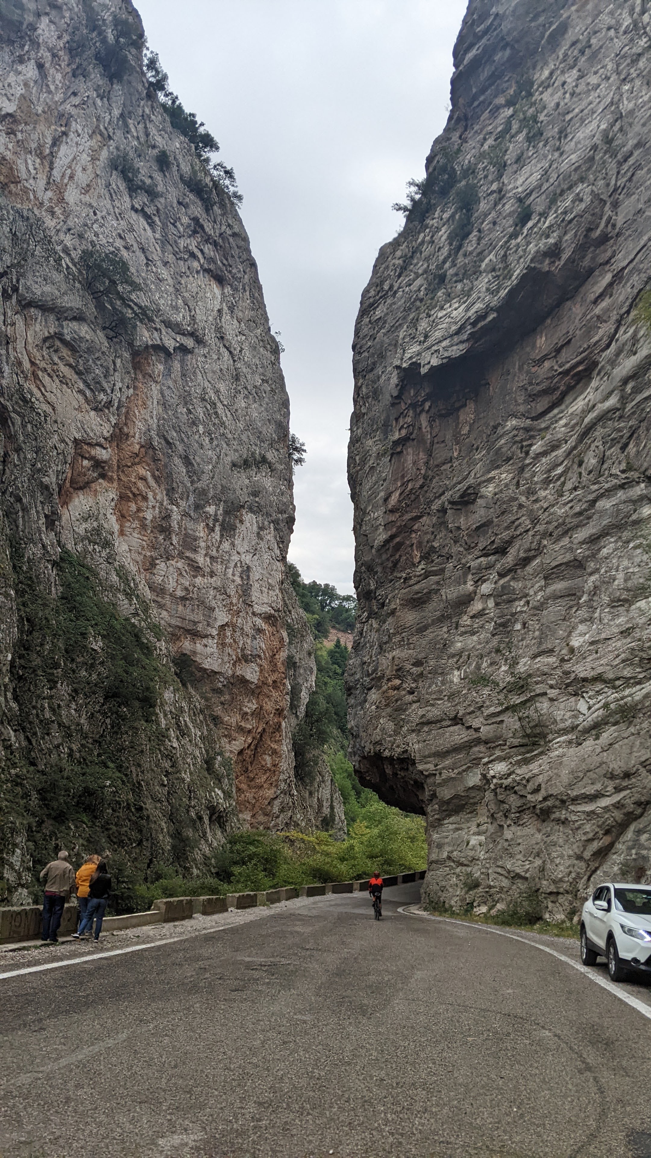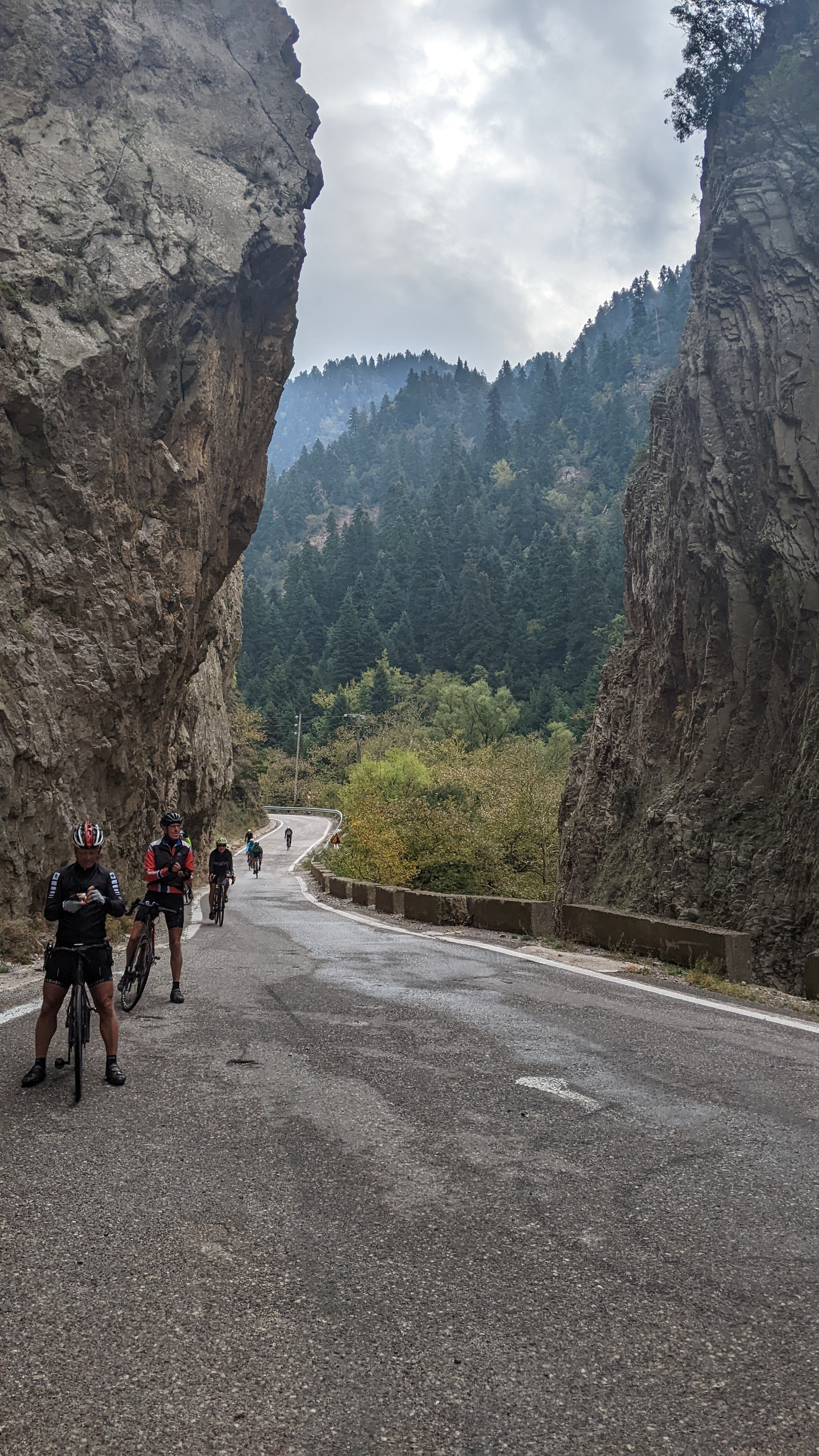 Back to climbing. It was steep for a long time and we had some rain sprinkles but not that much. As I got up to the summit, the road was actually dry for the first time today.
