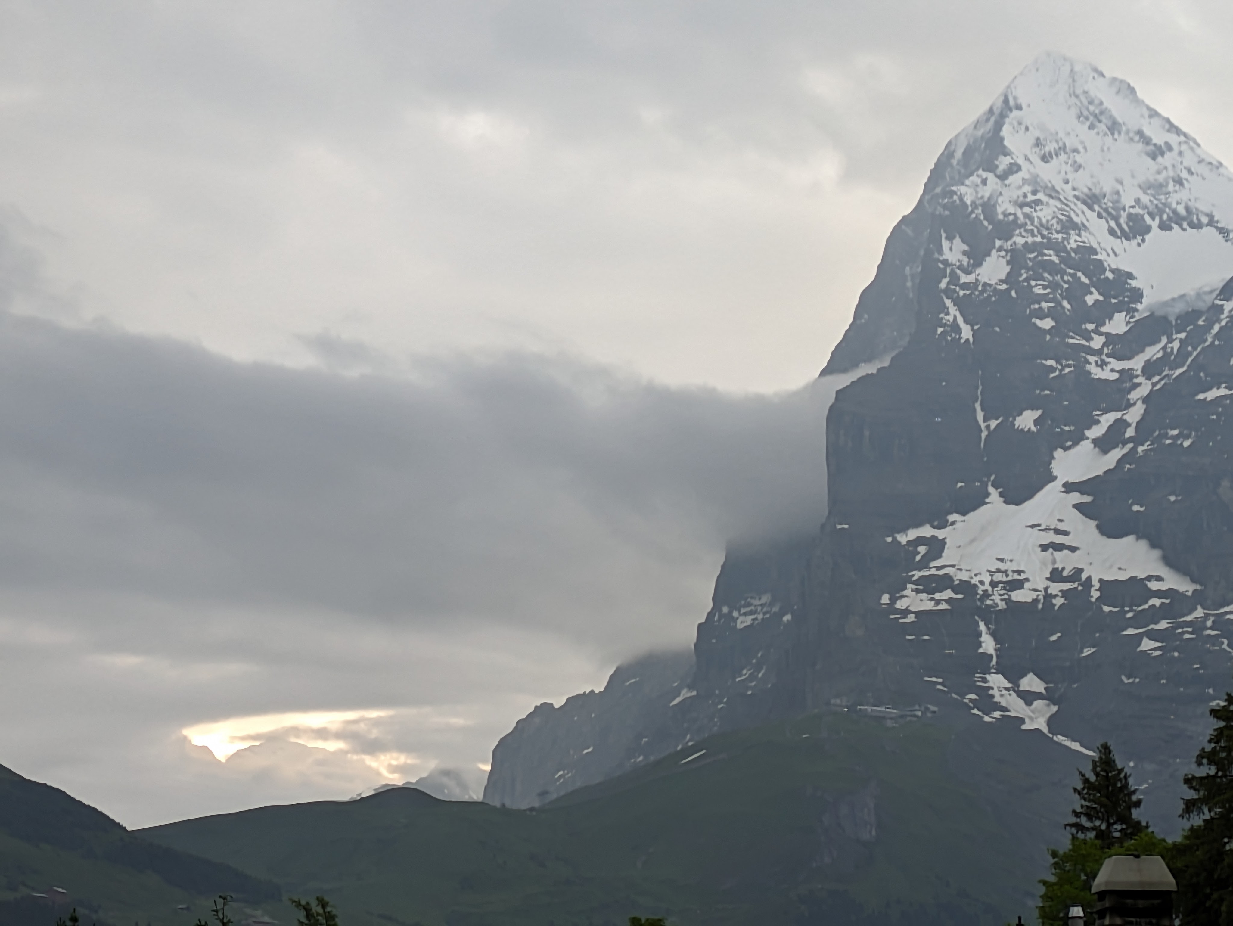 From the top, It was a short walk to our hotel and we checked in. After a minute we looked out the window and were shocked to see a view of the Eiger north face.