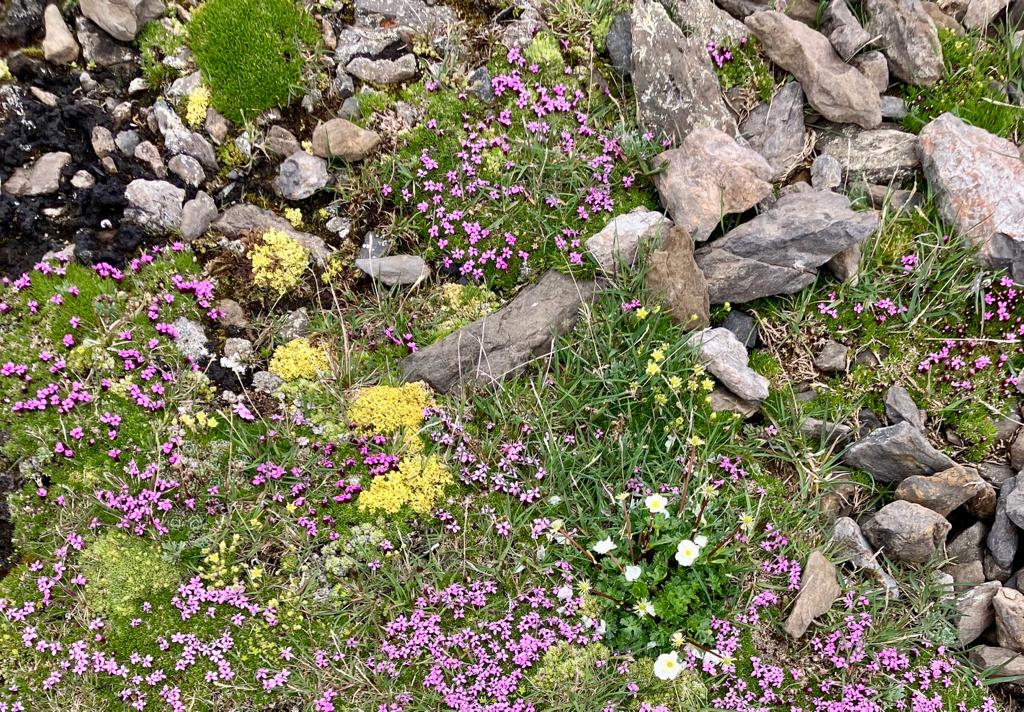 It looks chilly up on top! What lovely walk-down photos with gorgeous flowers and generally awesome mountain scenes. too bad about the excessive 007 emphasis, but YOU made your own special emphasis.