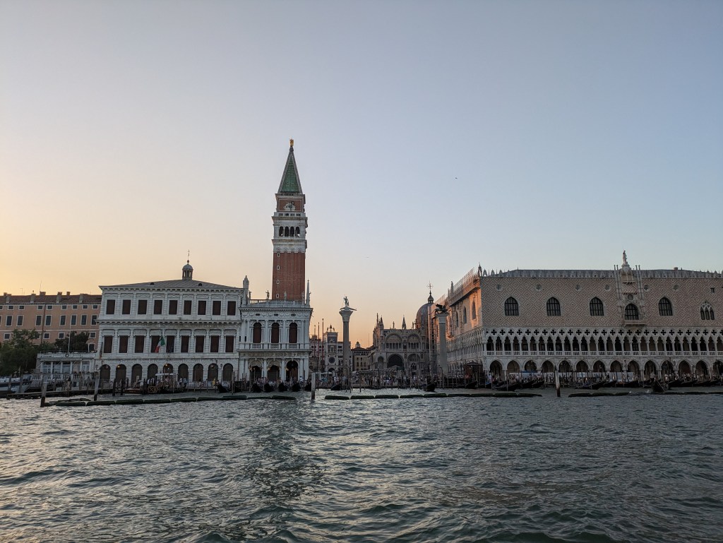 We took the bus and water taxi back to Lido. It was just around sunset and the light was so perfect. The water taxi took almost an hour, cruising up the Grand Canal, with an ever-changing view of Venice, seemingly at its best.