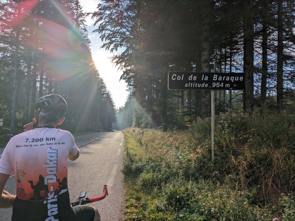 Today was the last stage of a block of four rides from Le Puy-en-Velay to Carcassonne. There were a few drops of rain in the night, and it was cooler than we’re used to in the morning. Breakfast was the usual, plus porridge. Rob shared that because of the terrible earthquake in Morocco a few days ago, we would likely be changing the tour route and skipping Marrakech. But he reassured us we would be going to Dakar in the end. As planned, it’s 50 more stages! We headed out at 8:15, down the steep driveway from the campground. On the main road, the first 300m climb started almost right away.