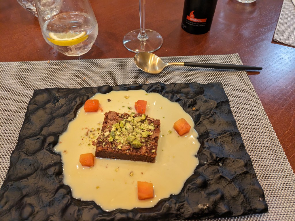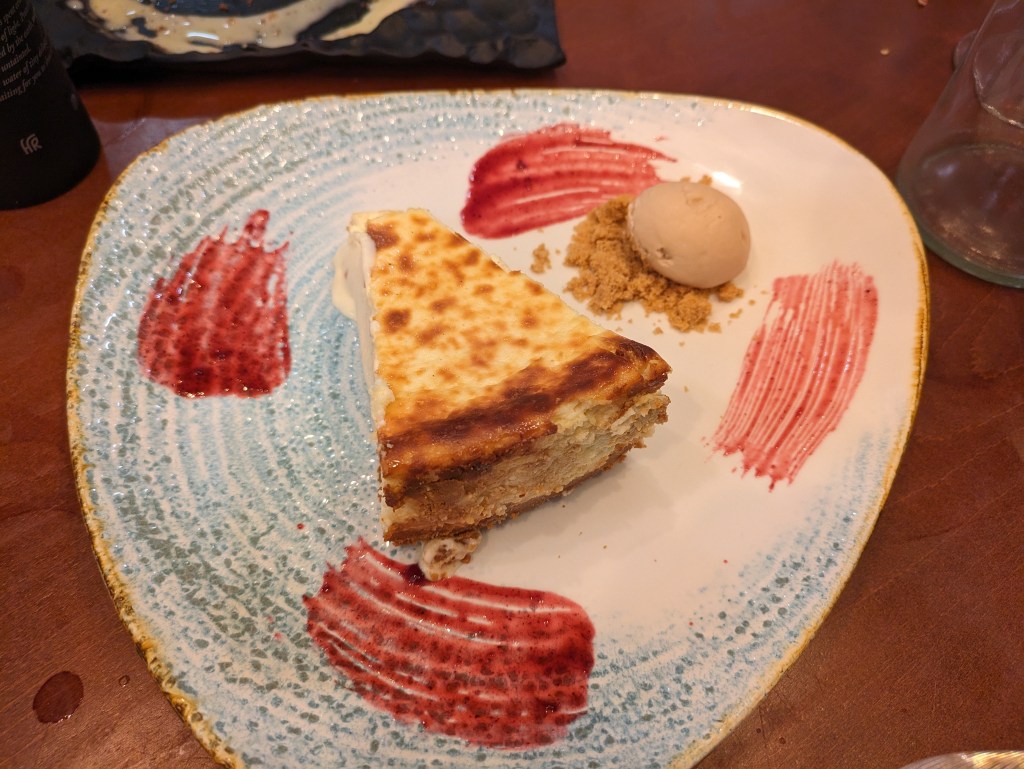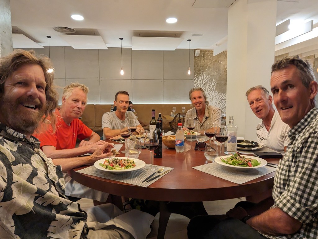 After a stop at another café to hydrate and recuperate, it was time to walk to Restaurant Saucco, where we had a reservation for lunch at 2pm. Soon Daniel arrived, then our guest of honor, Ype. We wanted to do something nice for our wonderful mechanic and lunch provider extraordinaire, so took him out to lunch for once. Saucco was amazing. We had the set lunch, three courses with seemingly unlimited wine and water. It was a multi-hour gastronomic feast, just epic. In the end, after the most amazing desserts ever, and three bottles of wine, Wytze wanted to continue and ordered a couple more servings of the best dessert (cheesecake) to share. These extra orders turned out to be even bigger than the regular ones. After this we still didn’t want it to end, so Daniel ordered a round of coffee with rum. I didn’t know that was a thing. By this time we were the only ones in the restaurant. This is truly living like kings, probably better though, due to the company and lack of bullshit. The combination of comradery, everyone’s stories, the superb food, and the change from our normal life is hard to describe, but wow!