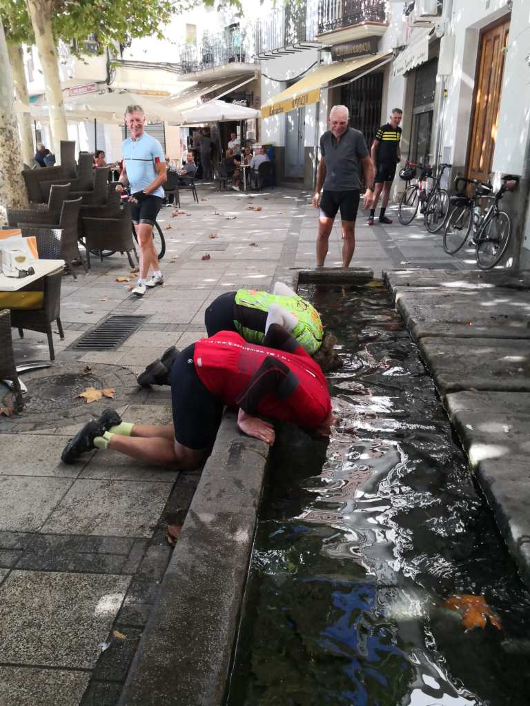 From there it was a fun descent to town, and I was in charge of finding a bar for more beer. We got to a nice looking square but it had two bars and I had to decide. I picked the one that looked like it had better shade, not even noticing its best feature: a fountain where we immediately dunked our heads. The beer here came with potato chips with anchovies on top. That was not bad either!