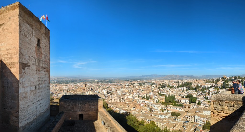 We walked up to the Alhambra which is way more extensive than I envisioned. There are tons of gardens, with water flowing nicely in small streams. The palaces and fortress itself are almost 800 years old, built originally with Islamic architecture, but in places modified after the Spanish Royal family took over in 1492. Our three hour tour walked all around and gave us access to all the parts open to the public.