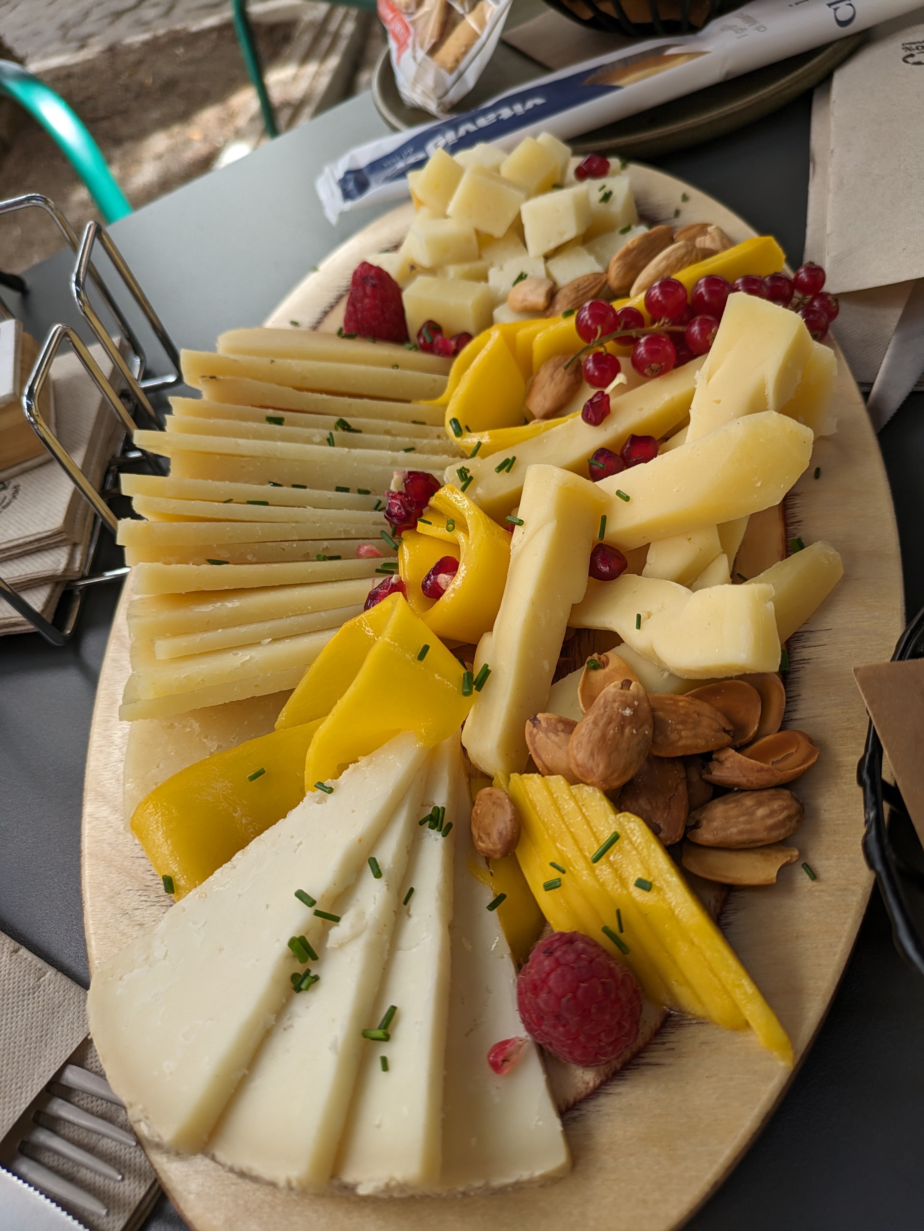 After the tour was over we didn’t take the guide’s advice and visit the museum. Sometimes enough is enough. Instead we walked downtown and had a pre-lunch cheese-platter with other snacks and beer and wine.