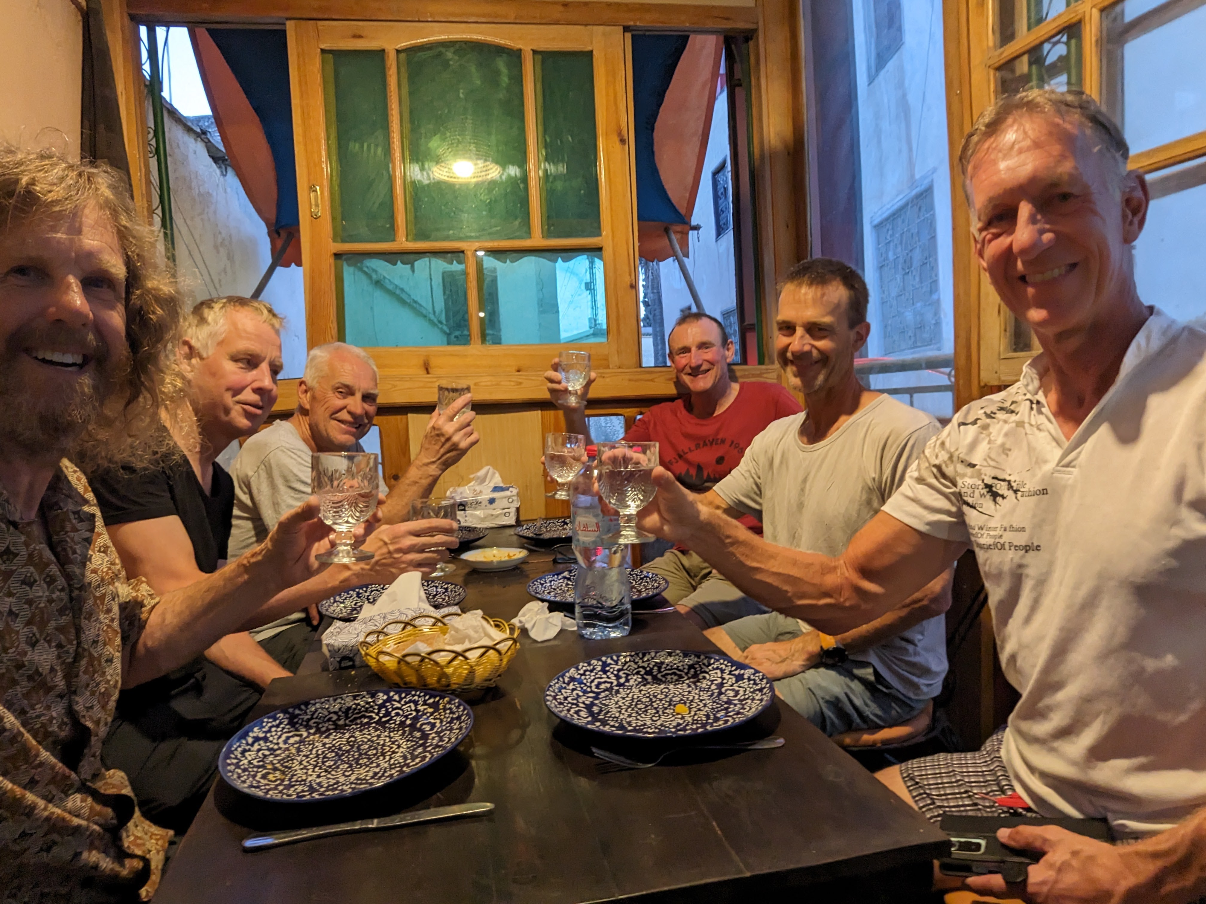 The WiFi is great here and I had excellent long video chats with Beau in Japan and Katie at home. I hung out, had a nap, chatted a little, then went out to dinner in the old town with Wytze, Daniel, Bart, Jan and Willi. We ate in a cool little Moroccan restaurant – I had delicious soup and fish with tomato.