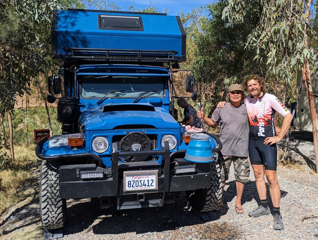 We continued the climb, then stopped at a friendly restaurant for drinks and snacks. It was at 63 km and then the text from Ype came in “Lunch is open at 66 km”. After sodas and mint tea, we headed there and had a good lunch. From there we had under 60 km to camp, mostly all downhill. Dennis and Wytze blasted out the first 40+ of that at what felt like full speed to me, mostly 40 ish kph, more on the downhills. We pulled in to a little restaurant and Dennis had the biggest smile ever, “Now that was cycling!”