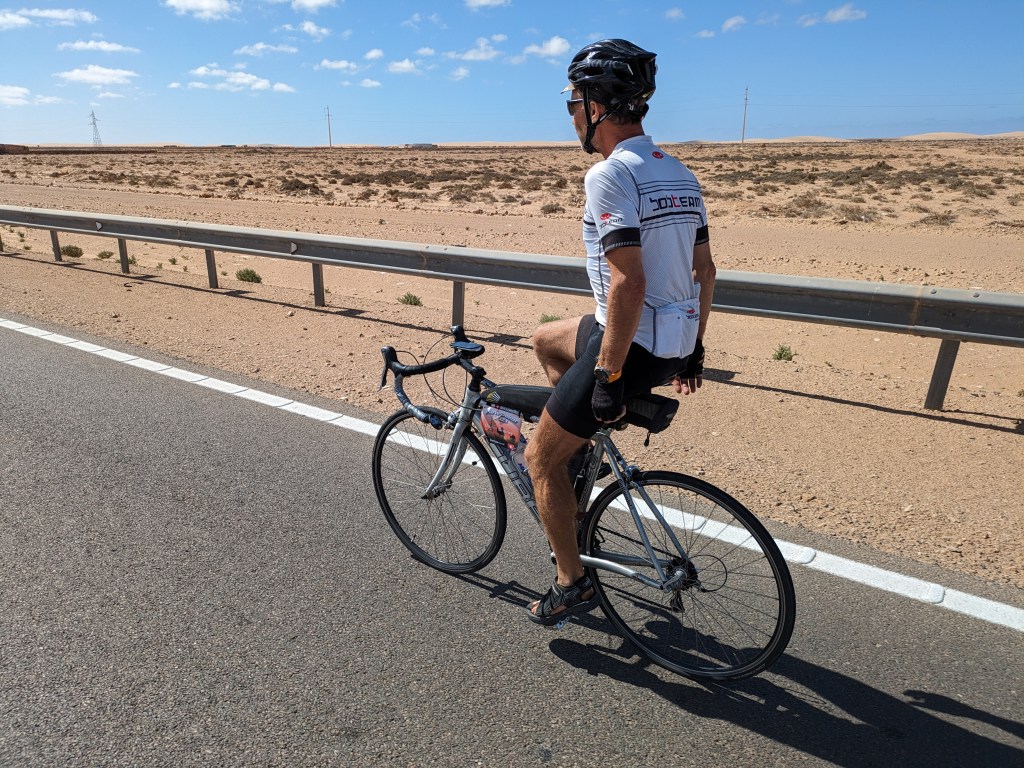 It was another 20 km or so, and we could not discern the border. That’s because Morocco says that Western Sahara doesn’t exist, and thus there is no border. I am counting it as a new country though, #67. But under no circumstances are we to use the words “Western Sahara” when talking to any official. We are simply on our way to Mauritania and then Senegal.