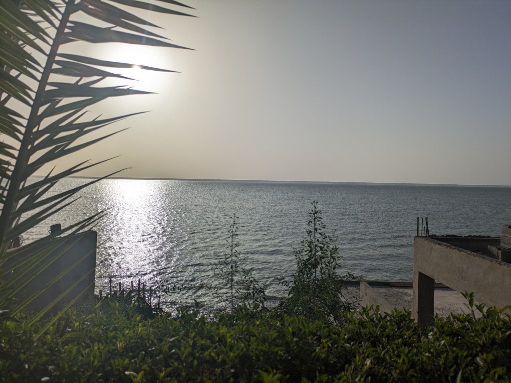 Our 9th rest day was October 30, 2023. Dakhla is a big city of over 100,000 people. I had never heard of it before signing up for this trip. It’s fine for a rest day as the hotel we’re staying in is clean, we have access to the bikes to do whatever maintenance is needed, and there are plenty of restaurants around. You can go swimming in the bay, get massages, etc. I think most people are like me, really in need of a rest, so are not looking for museums or special touristy things to do. I know I’m not.