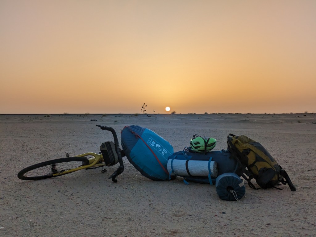 Given how used up I was from yesterday’s ride I was a little worried about how much rejuvenation I would get overnight. But it worked! I woke up early, around 5:30, feeling pretty good. Going to bed before 8pm can be great 👍 I went out to do my morning business before it got light and it was surreal. A giant truck and earthmover arrived and drove right through our camp. The guys made a ramp out of sand so the earthmover could drive onto the truck, but it was right by one of our tents, strange.
