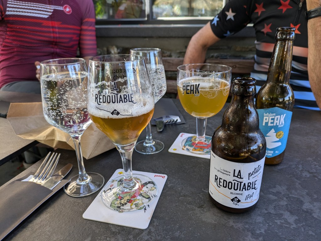 We started a fire in the outdoors hot tub for after our ride, unloaded the trailer, had brunch, then headed out on our bikes. Andrew hadn’t assembled his yet so was on a borrowed MTB. My bike felt great, perfect really. After just a few km we came to a downhill and suddenly I was going over 70 kph which felt wonderful. The roads are smooth, traffic is light, the terrain is hilly and the area has lots of cycling history. We rode around, ups and downs, and after an hour made it to La Gleize, another famous town from the Battle of the Bulge. We visited the December 1944 museum there. For a relatively small place they have a pretty big collection of German and American war items. After that it was 3 pm and time for lunch! There is a great restaurant in town called La Vert de Pommier where we each had “Salade Val Dieu” with pear and warm cheese, wow! It went really well with some local beers. Life seems great here.