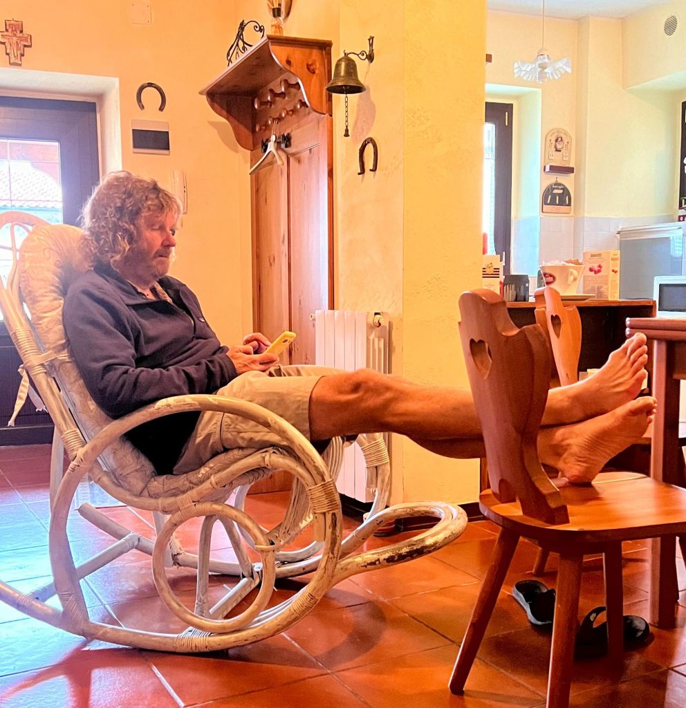 After some writing, I fell asleep in bed, bliss. But soon I had to wake up for dinner. There are two restaurants in this town but only one that didn’t say closed. Banking everything on it being open we started walking at 7 pm. When we finally saw those lights and walked in that door, it was great. We had a three hour dinner, massive with two liters of wine and amazing foods ending with Amaro for all. Wow, it’s so good to be here. And it wasn’t raining anymore for the walk home. What a day!
