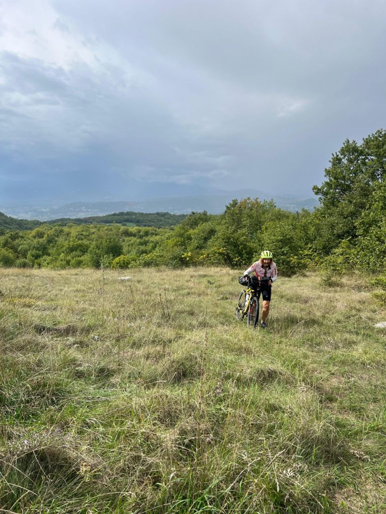 Then some climbing on pavement before the fun started. I can’t even remember all the details of the ride today, my brain is overloaded. The morning session had a very long hike-a-bike section through super muddy and rocky cowshit covered trails. I do remember stopping in Isernia after noon for some great pizza. I ended up being SO glad I had a second slice!