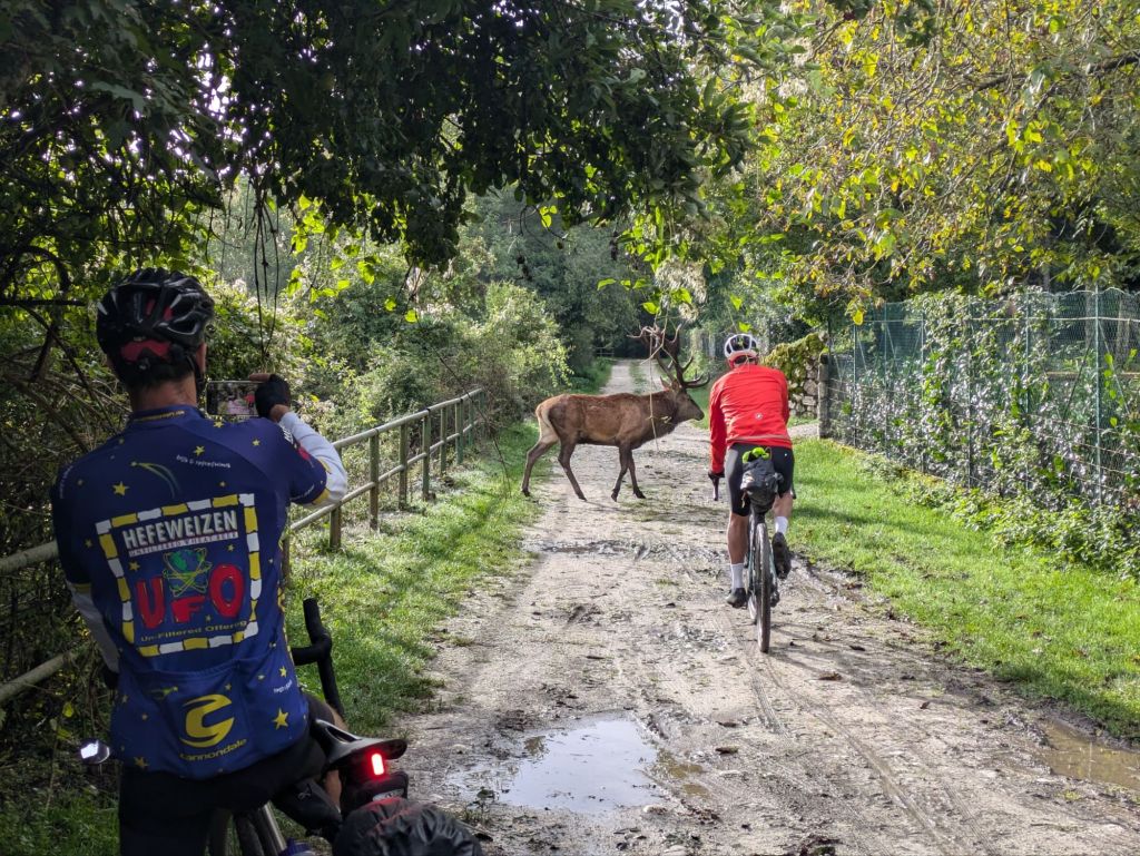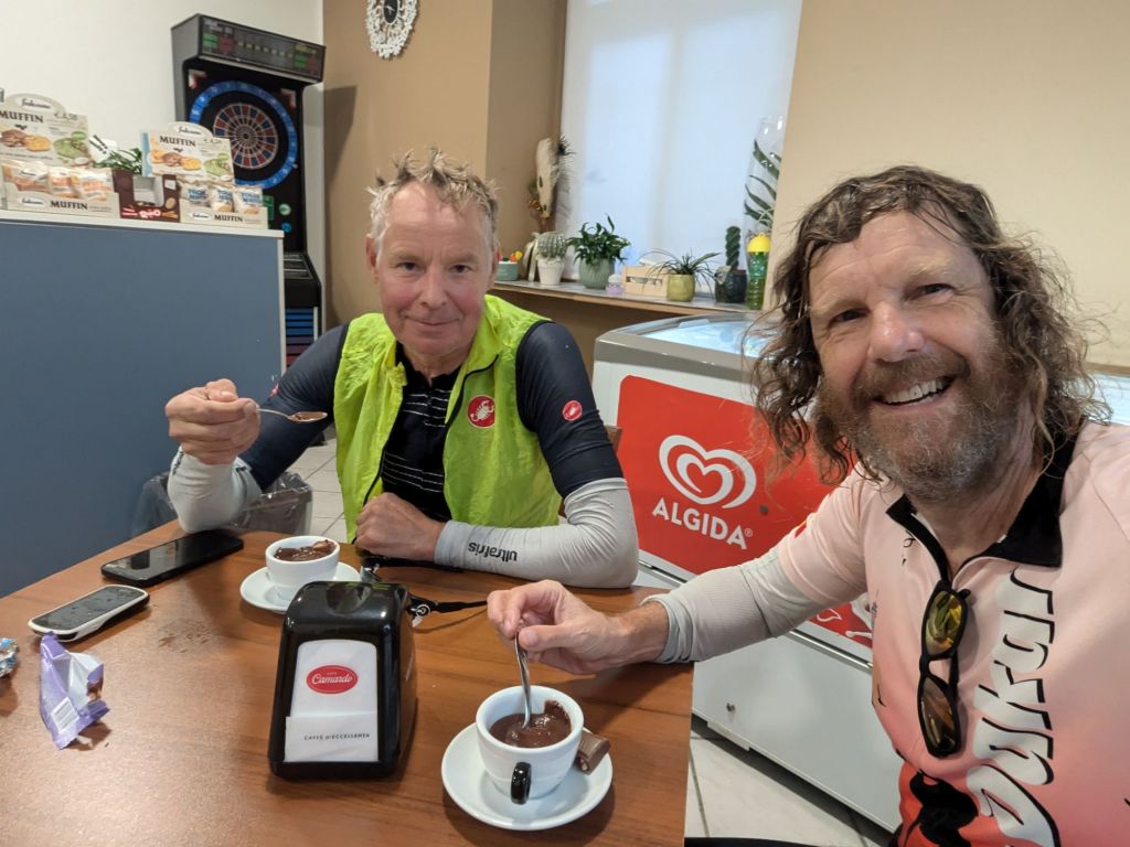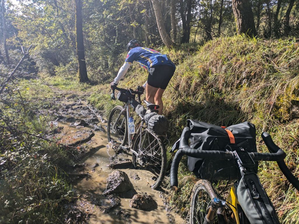 The last 12 km or so was super wet, mostly through muddy fields with a brief, fast one km section on the main road, wet and scary. Then we arrived in Bojano and Andrew poked his head out the window and let us into the B&B. The shower felt 👍 but I washed so much dirt down the drain I almost felt guilty.