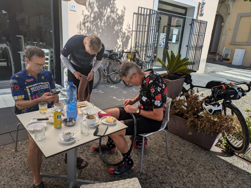 We somehow seem to be about halfway through this adventure already. Today we met our buddies doing our route backwards with Bike Dreams, the Dutch bike touring company I’ve done three big tours with. We also finished the third GPS segment of six on our Italy Unite route.