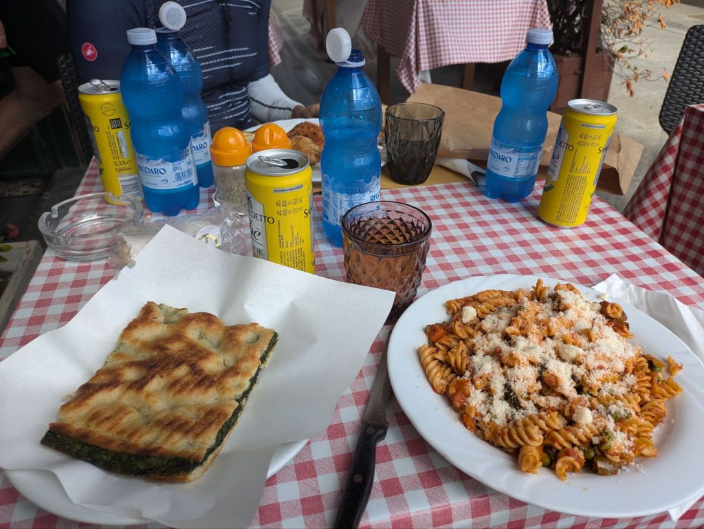 After laundry it was time for dinner. We walked up the hill to the old town and had a great dinner. With local red wine, cantucci with sweet wine for dessert and Amaro for a nightcap. So good. The weather looks iffy for tomorrow so we’ll decide in the morning how far to ride, or to have a rest day.