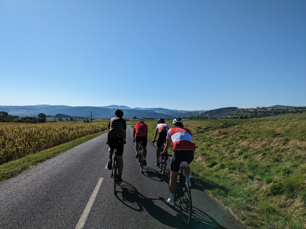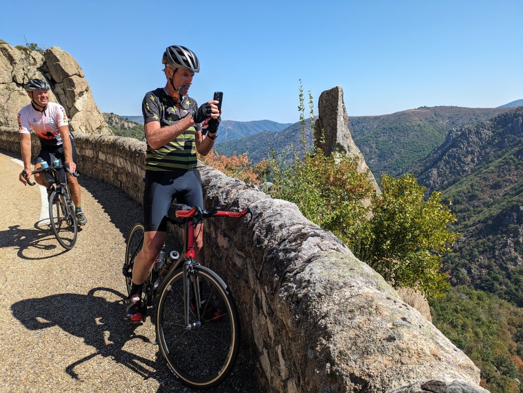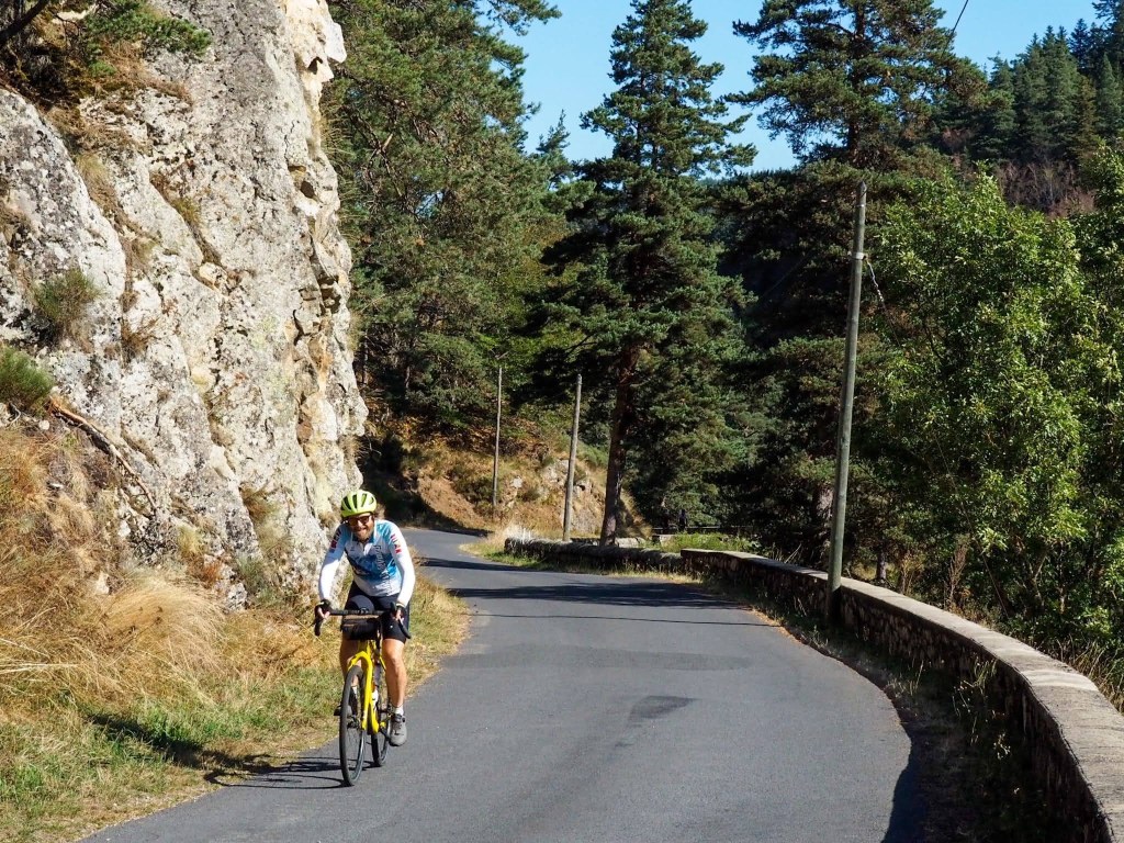 We started the ride a little after 9, and rode up to town, then the day’s climb started. It was an unusual day, with only one climb and only 66 km total distance to ride. But I had never before seen such a big single climb on my Garmin.